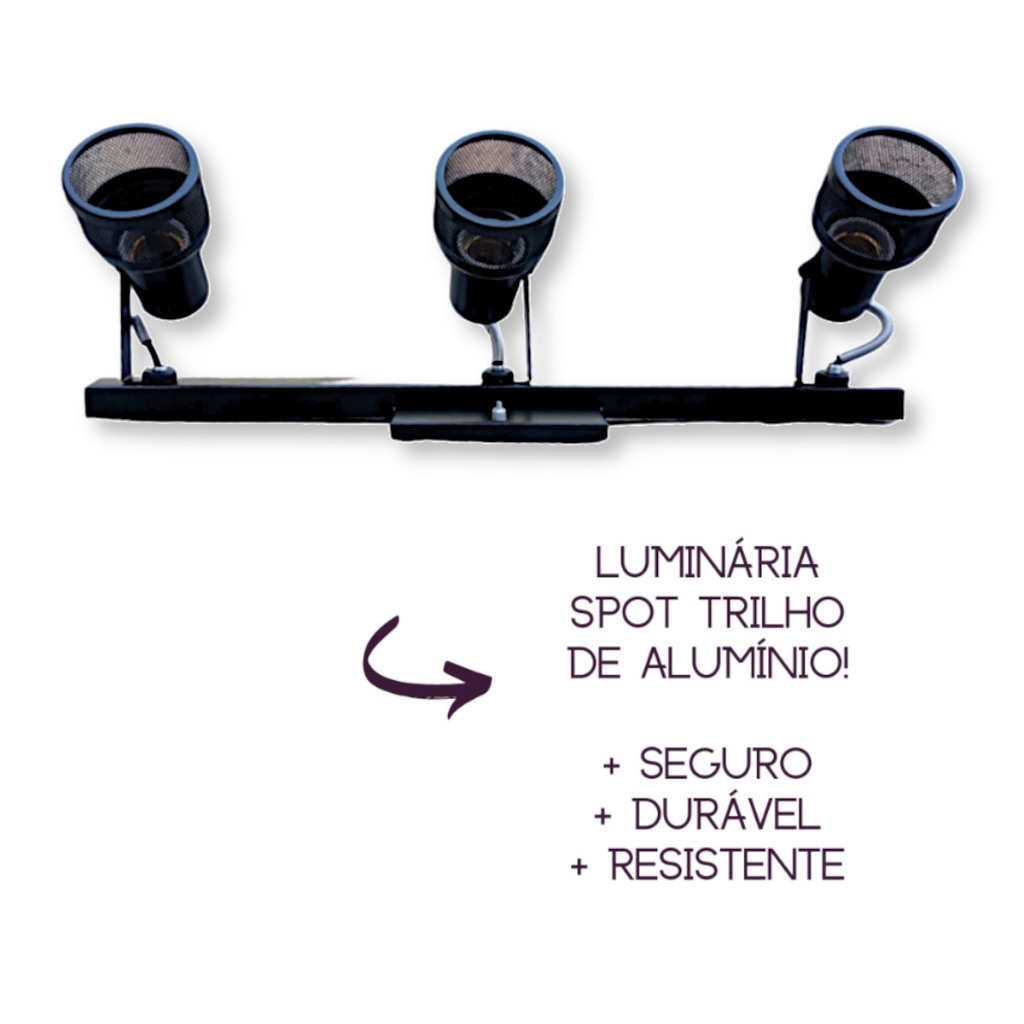 Spot Trilho Tela Luminária Em Alumínio Bocal Porcelana E27 100W 110/220 Volts