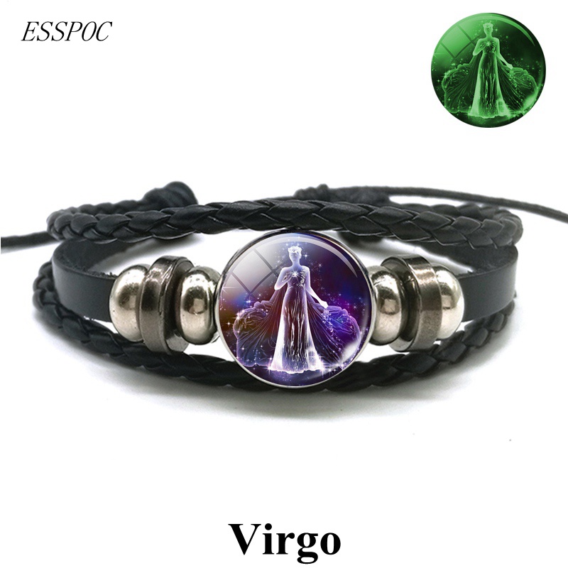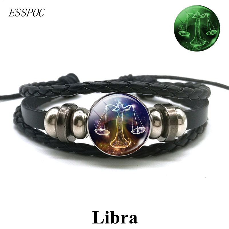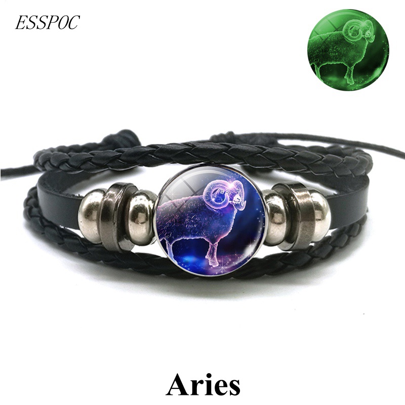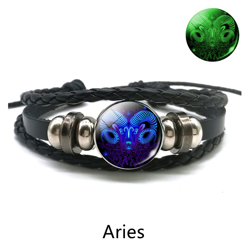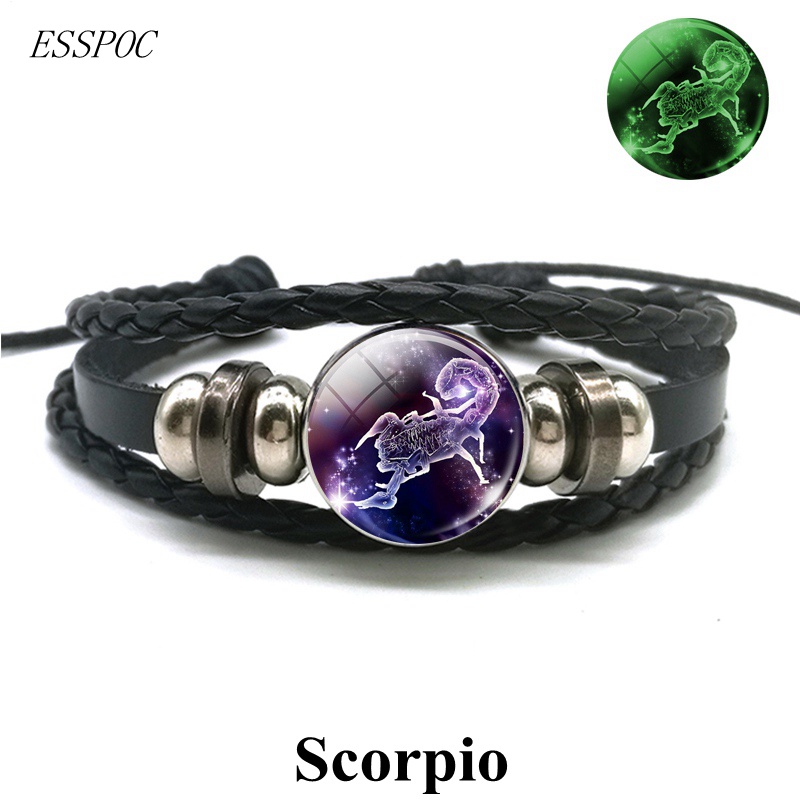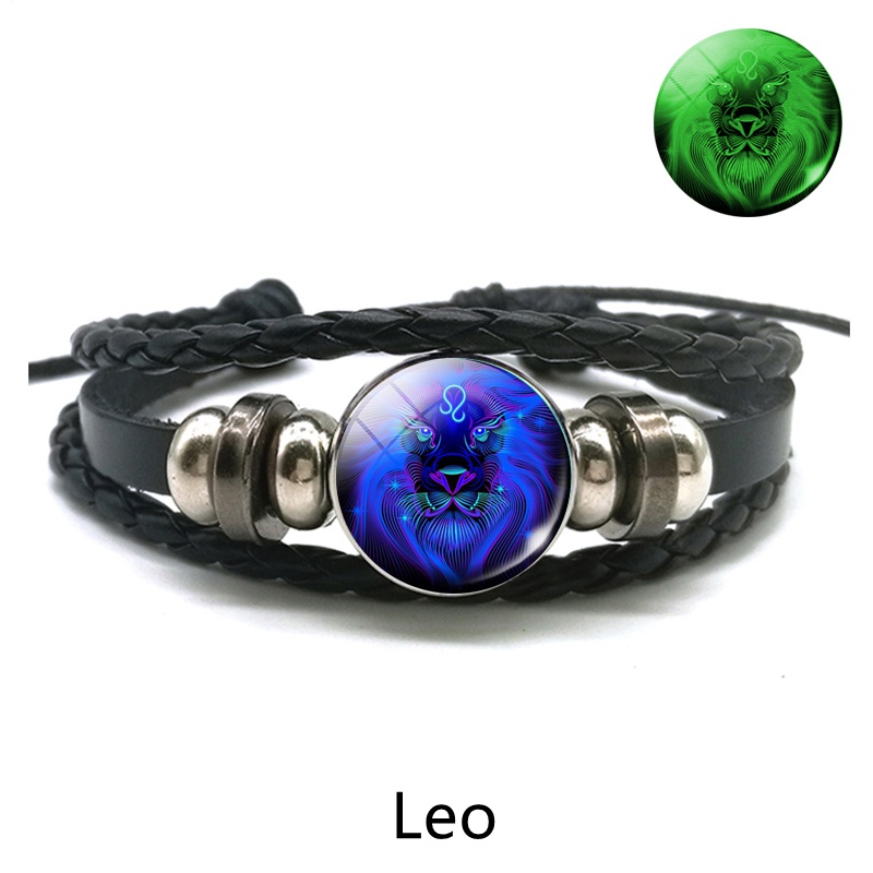 Gemini Leo Libra Scorpio Sagittarius 12 Constelação Pulseira Luminosa Punk De Couro Zodiac garrafa de agua Charme Jóias Para Homens