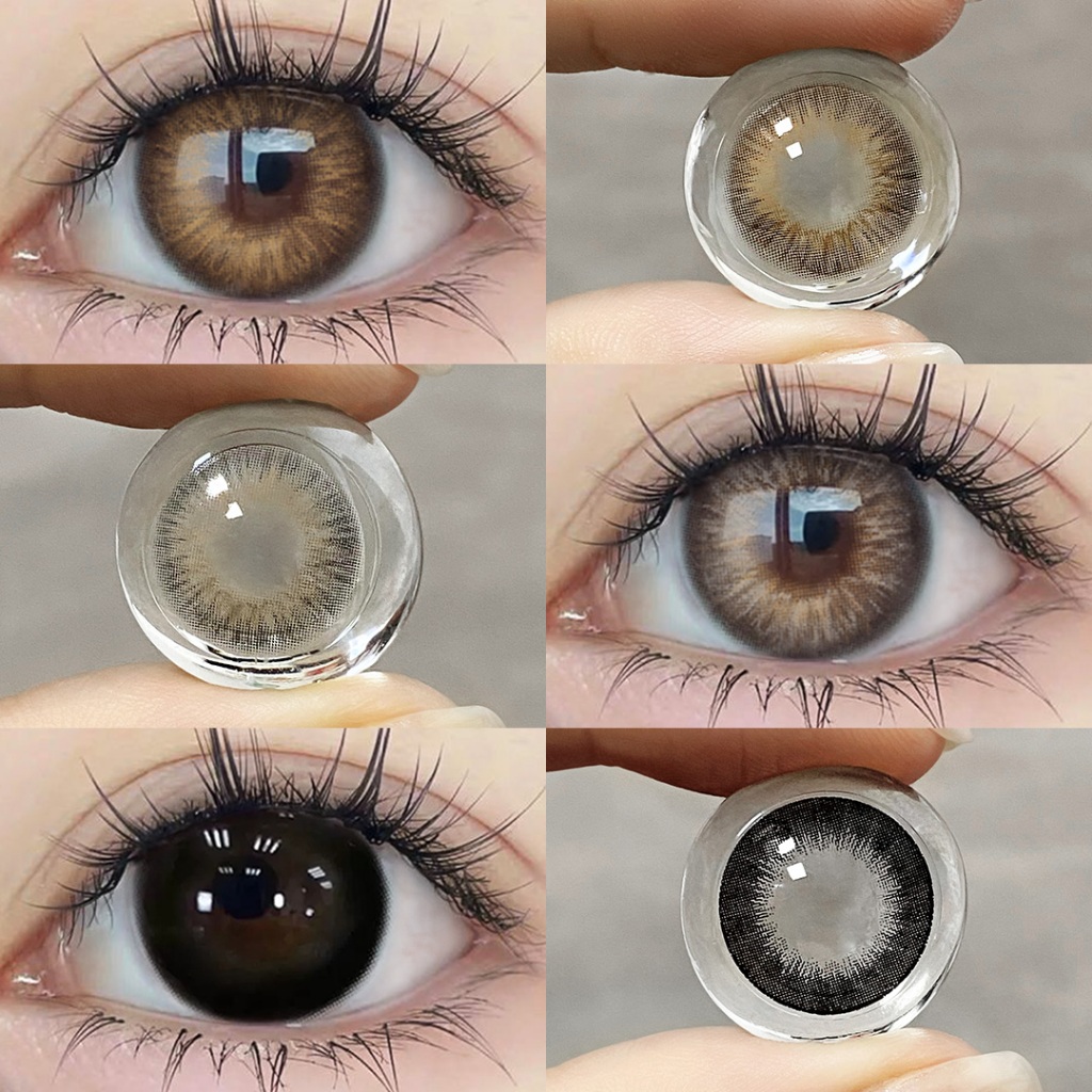 (0,00~ -6,00)Magister lente de contato colorida com grau 14.0mm Marrom/Cinza/Preto 2 Peças/Par Com Estojo De Lentes