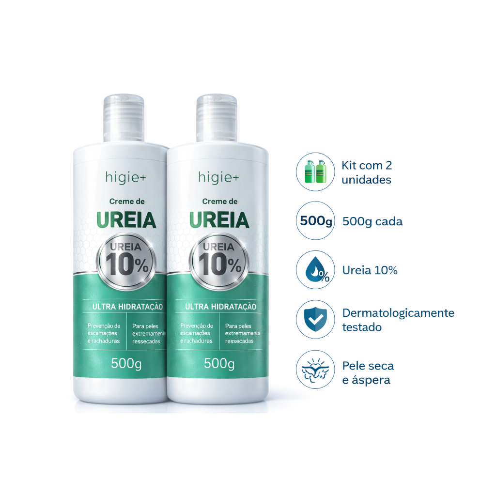 Kit 2 Cremes de Ureia 10% Higie+ 500g Hidratação Profunda Para Todo o Corpo e Pés