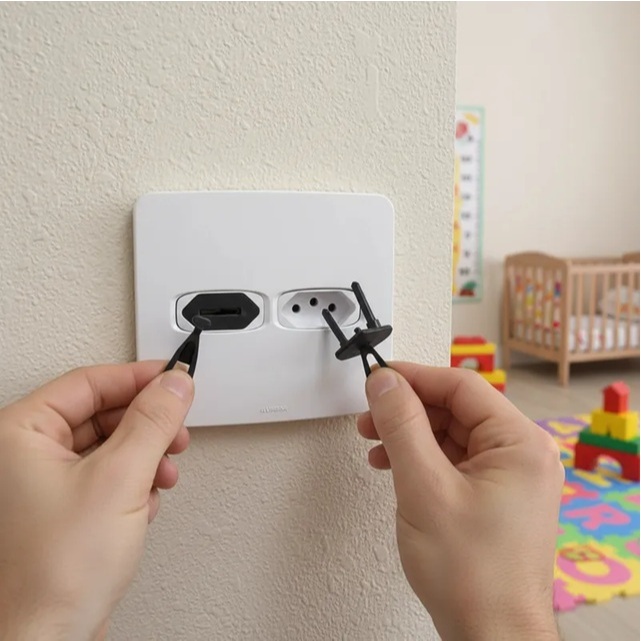 Kit 20 Protetores de Tomada Antichoque Preto 8 Chaves
