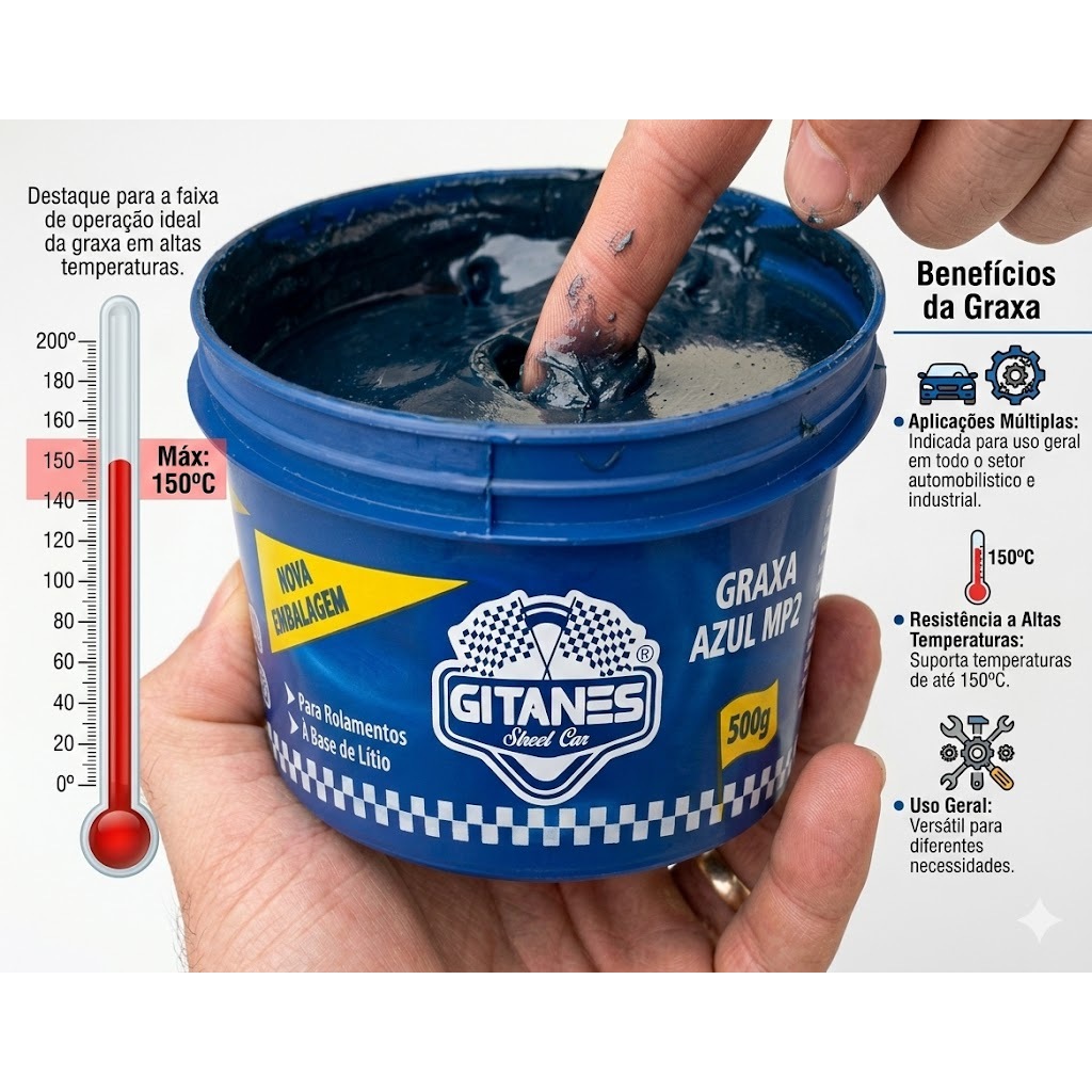 Graxa MP2 Azul à Base de Lítio NLGI 2 Alta Temperatura 150°C Uso Automotivo e Industrial