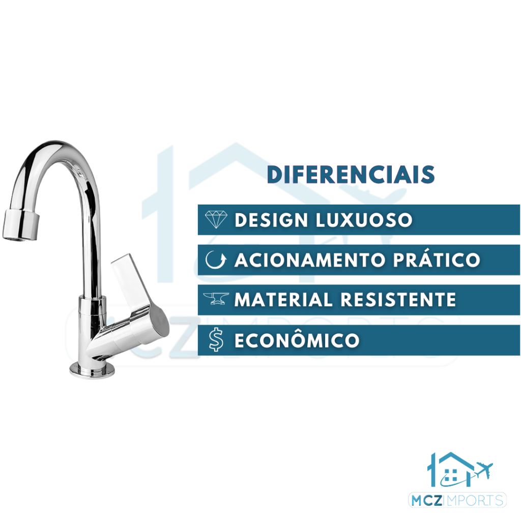 Torneira Pia de Banheiro Lavatório Lavabo Cromada Premium ABS 1/4 de Volta