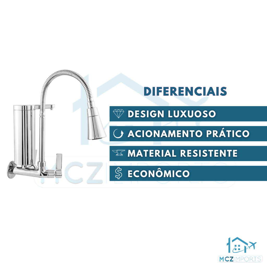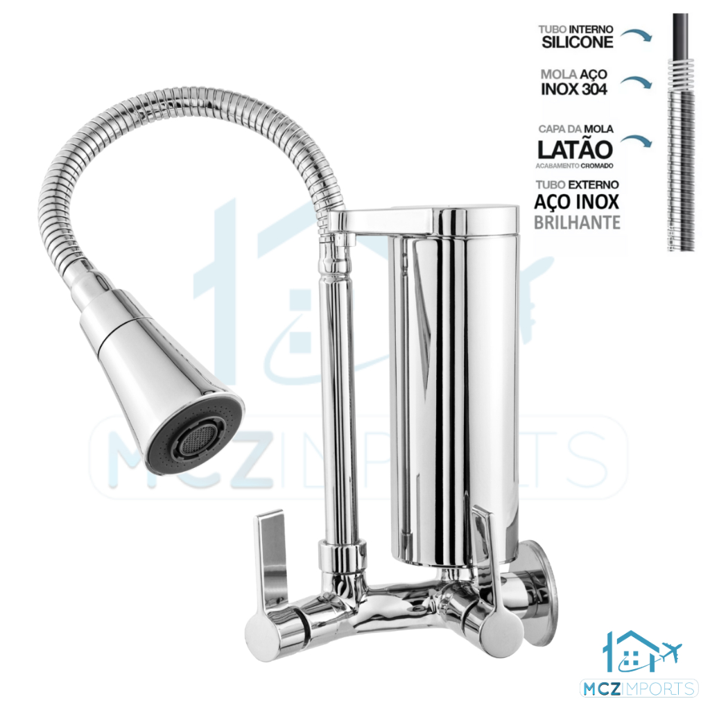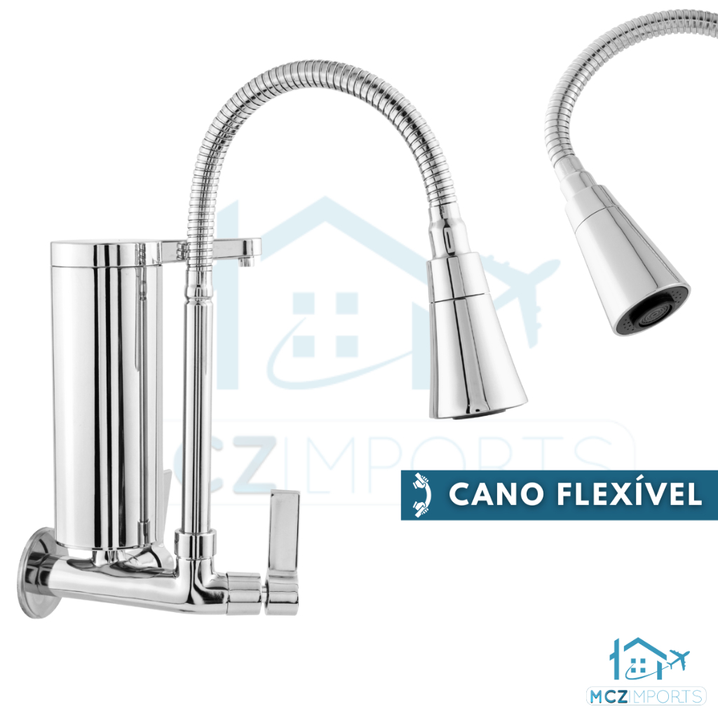 Torneira Gourmet Com Filtro Cozinha de Parede Luxo Pia Mesa 1/4 De Volta