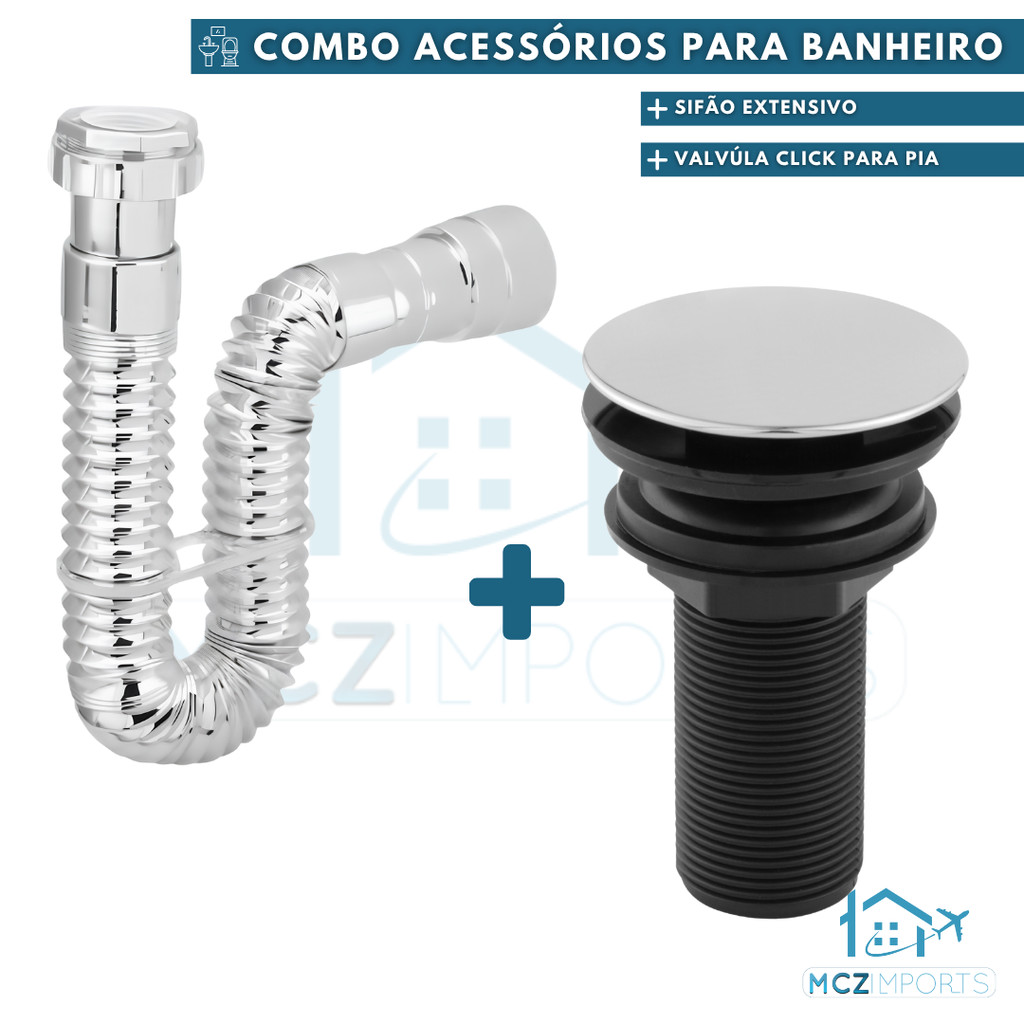 KIT Sifão + Válvula Lavatório 7/8 Preto ou Cromado ABS Banheiro