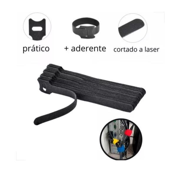 Kit 50 Abraçadeira Presilha Velcro p/ Organizar Cabos Preta