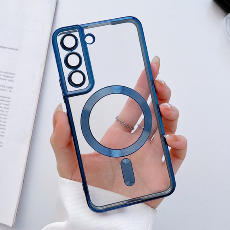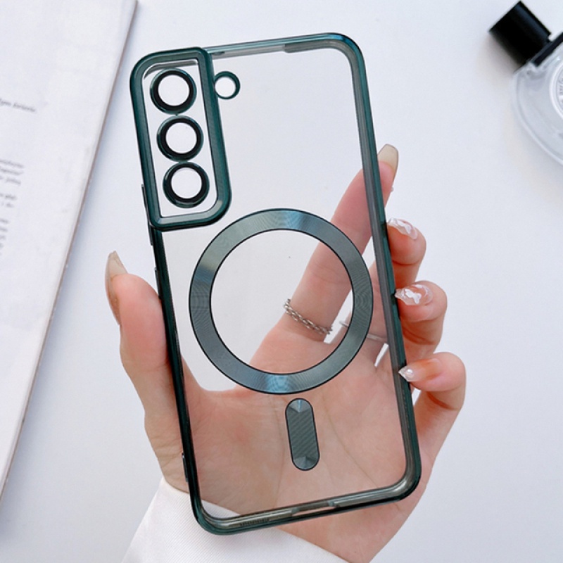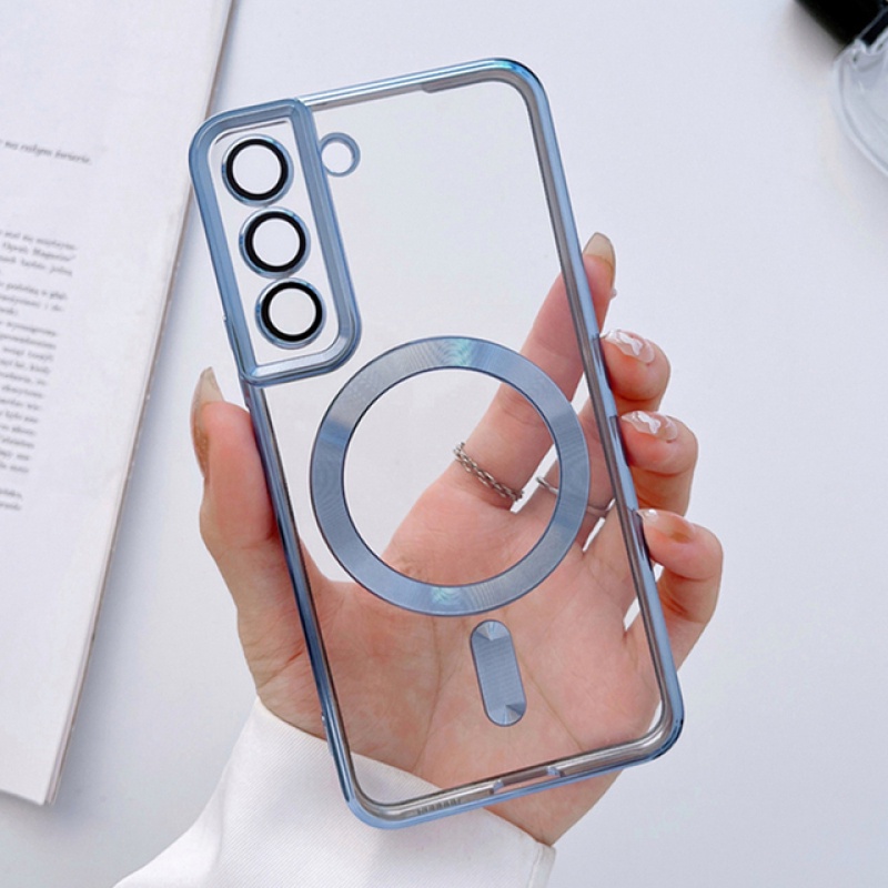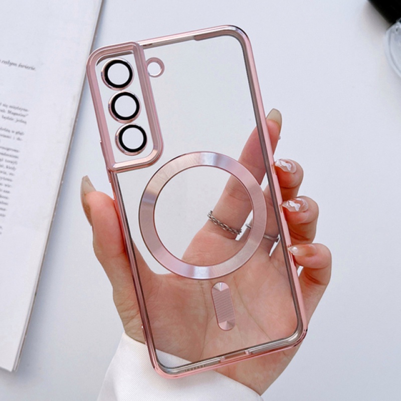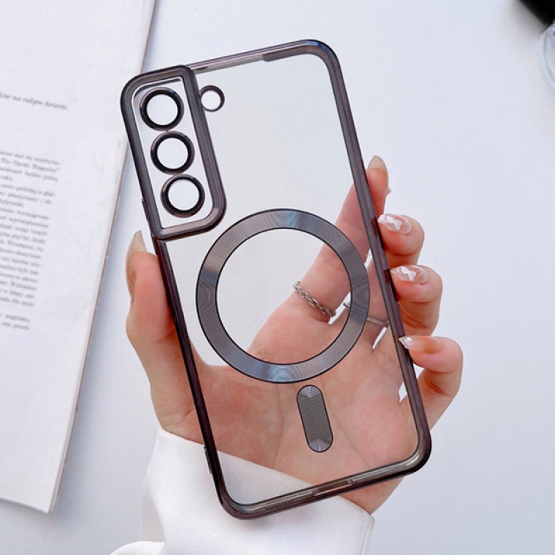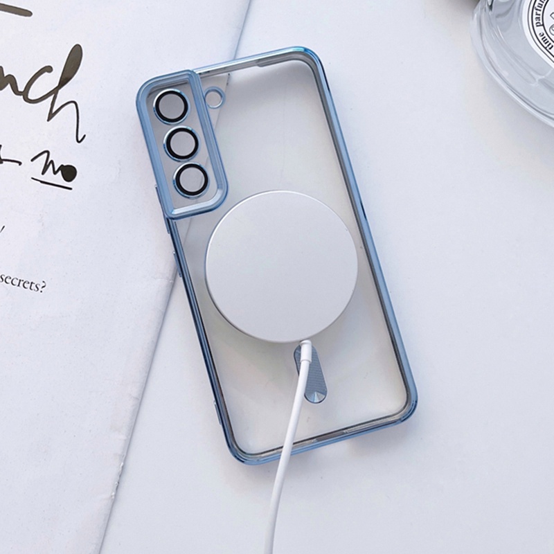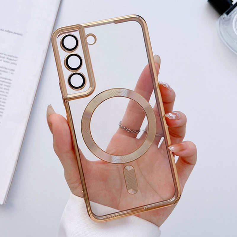 Luxo Chapeamento Transparente Magnético Caso De Carga Sem Fio Para Samsung Galaxy S25 Ultra S24 S23 S22 Plus Silicone Ma