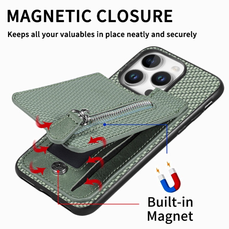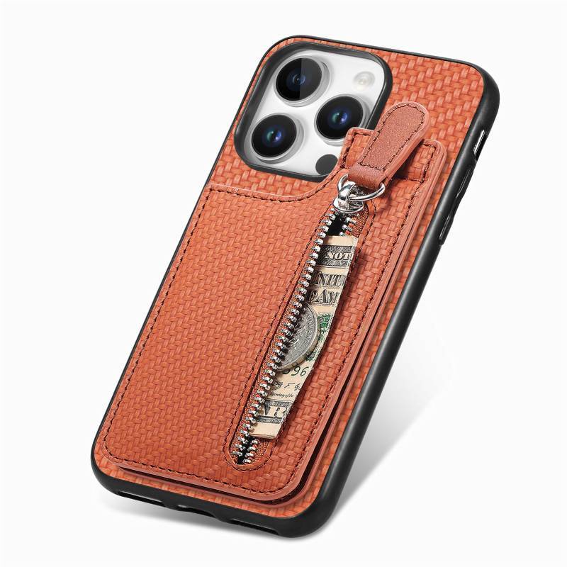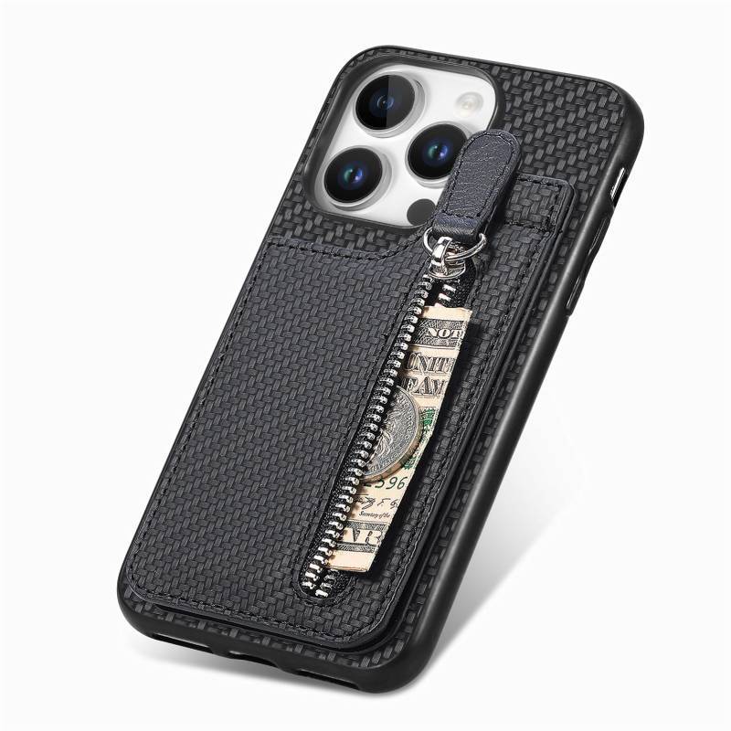 Capa de telefone de couro com fecho de correr para iPhone 16 15 11 13 12 Pro Max XS Max X XS XR 8 7 Plus