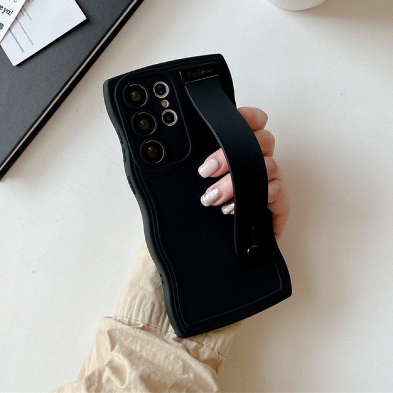 Capa Traseira Em Silicone anti-Queda E Choque Com Tudo Incluído Para Samsung Galaxy A54 A34 A14 A73 A53 A33 A23 A72 A52 A32 Telefone Alças De Pulso Fama De Onda Encaracolada