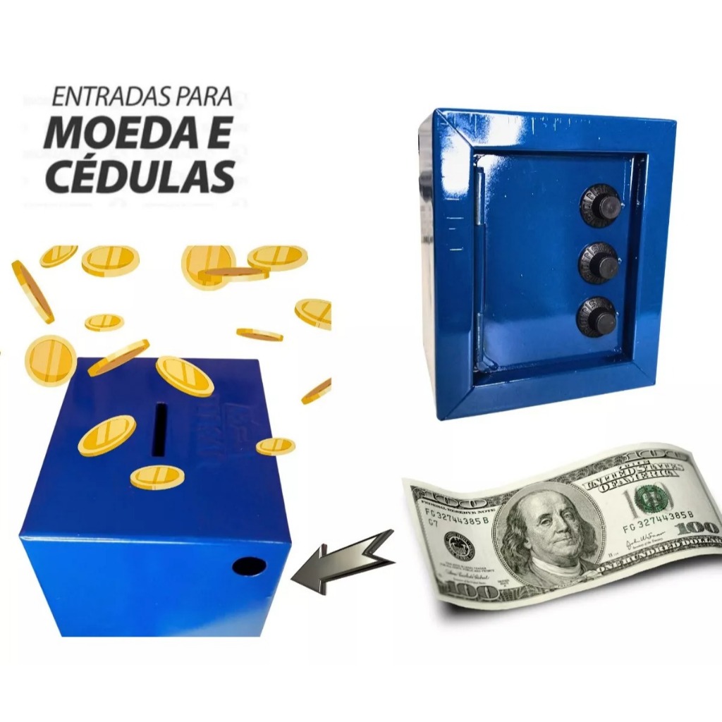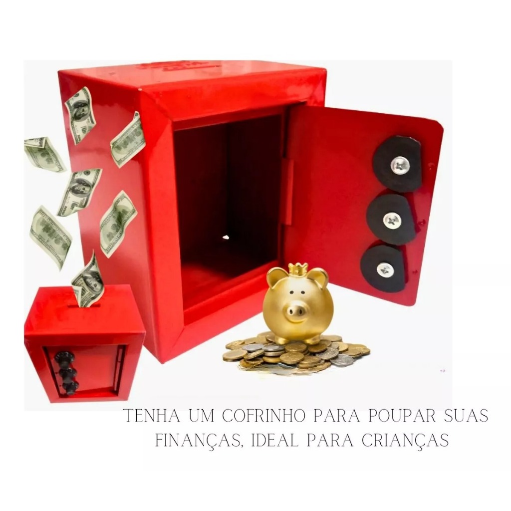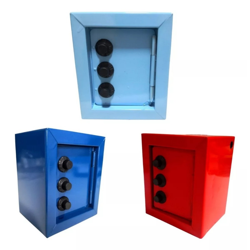 Mini Cofre Cofrinho Porta Moedas Segredo infantil Crianças Aço 10x8x12cm Fercar