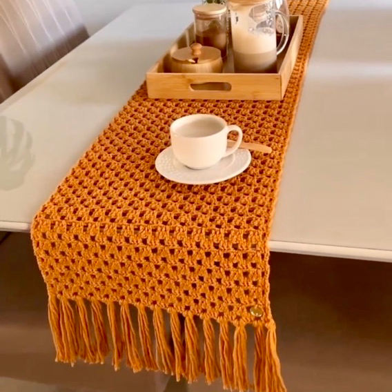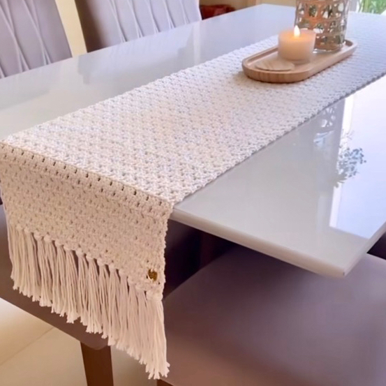 Trilho de mesa Boho | Caminho de mesa em crochê