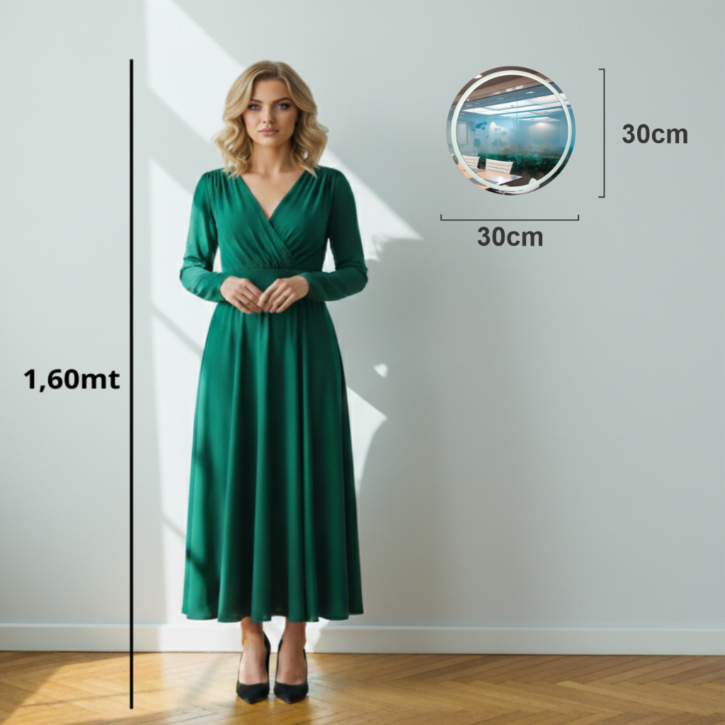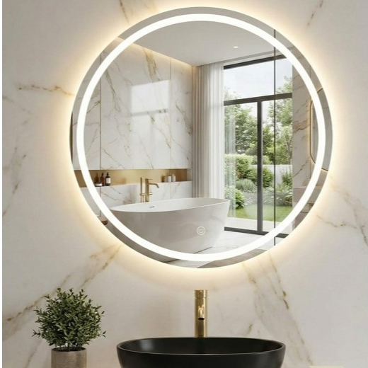 Espelho Redondo Jateado com 3 TONS DE LED e botão TOUCH SCREEN, FONTE SLIN, Quarto, Banheiro,Camarim
