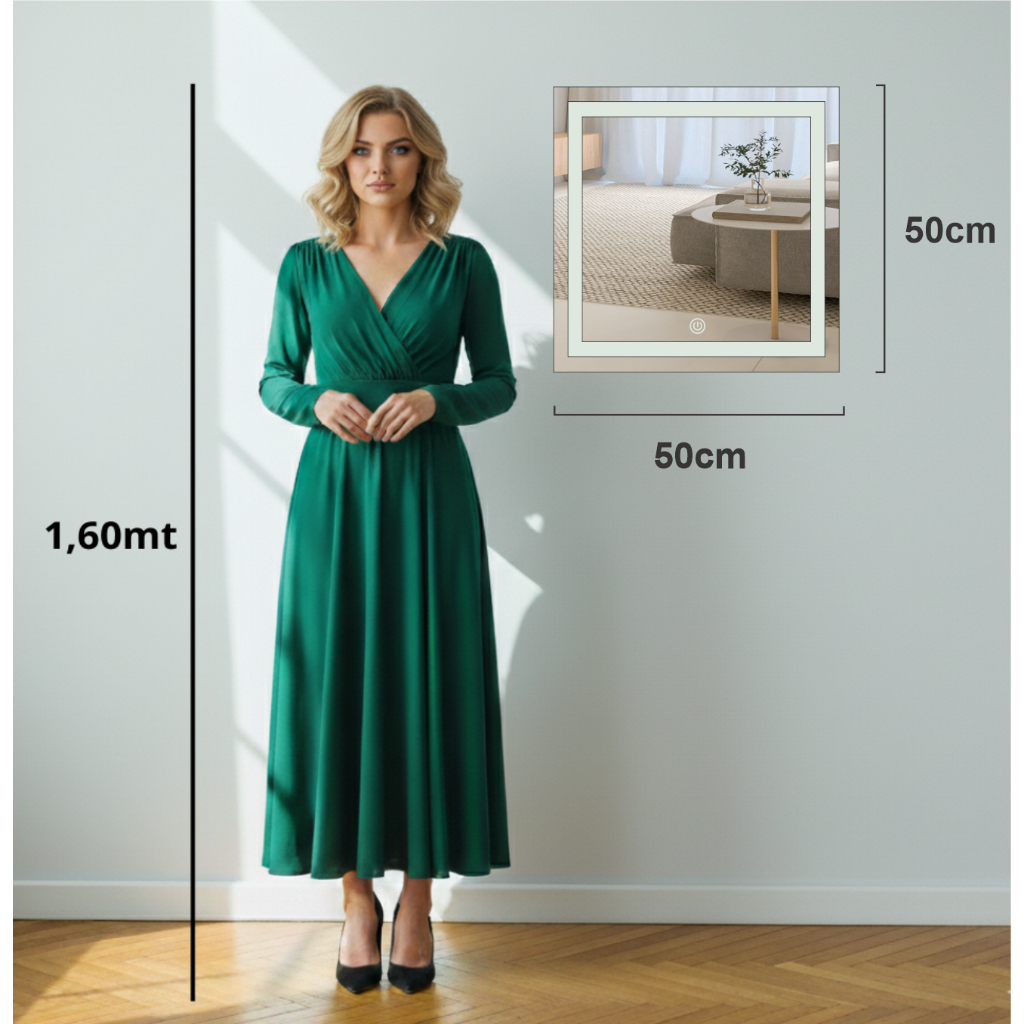 Espelho Quadrado Jateado com 3 TONS DE LED e Botão Touch Screen, FONTE SLIN, Camarim, decoração