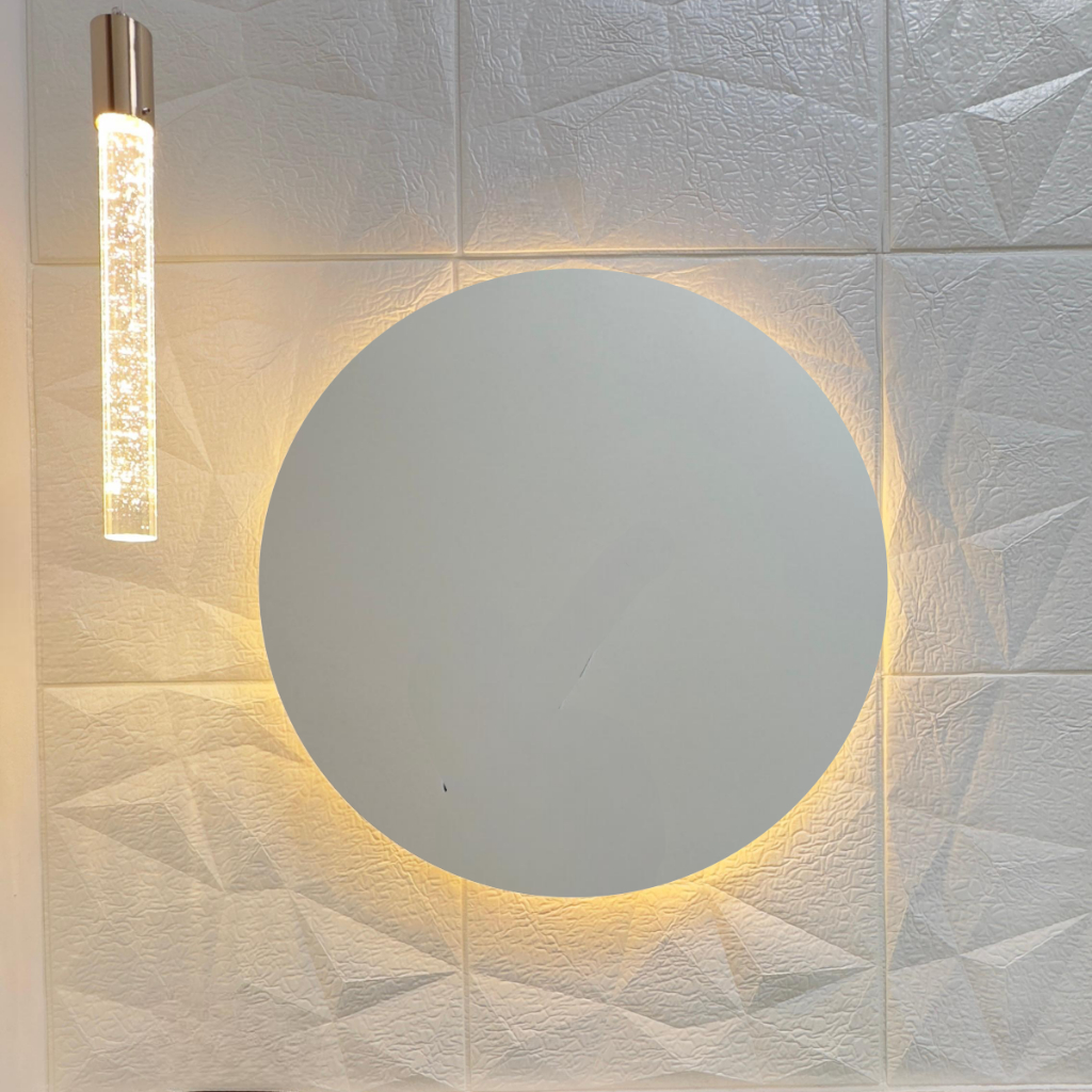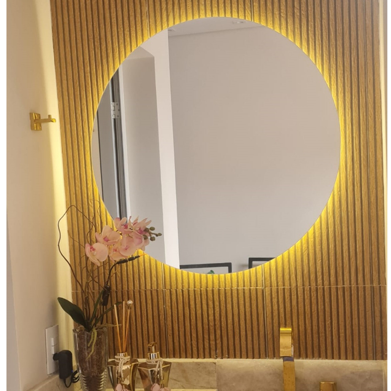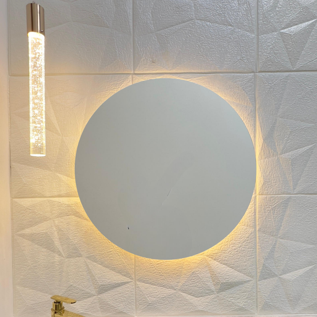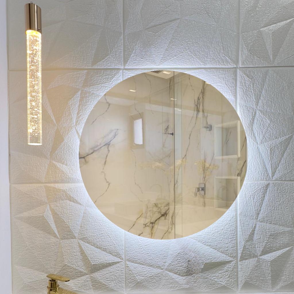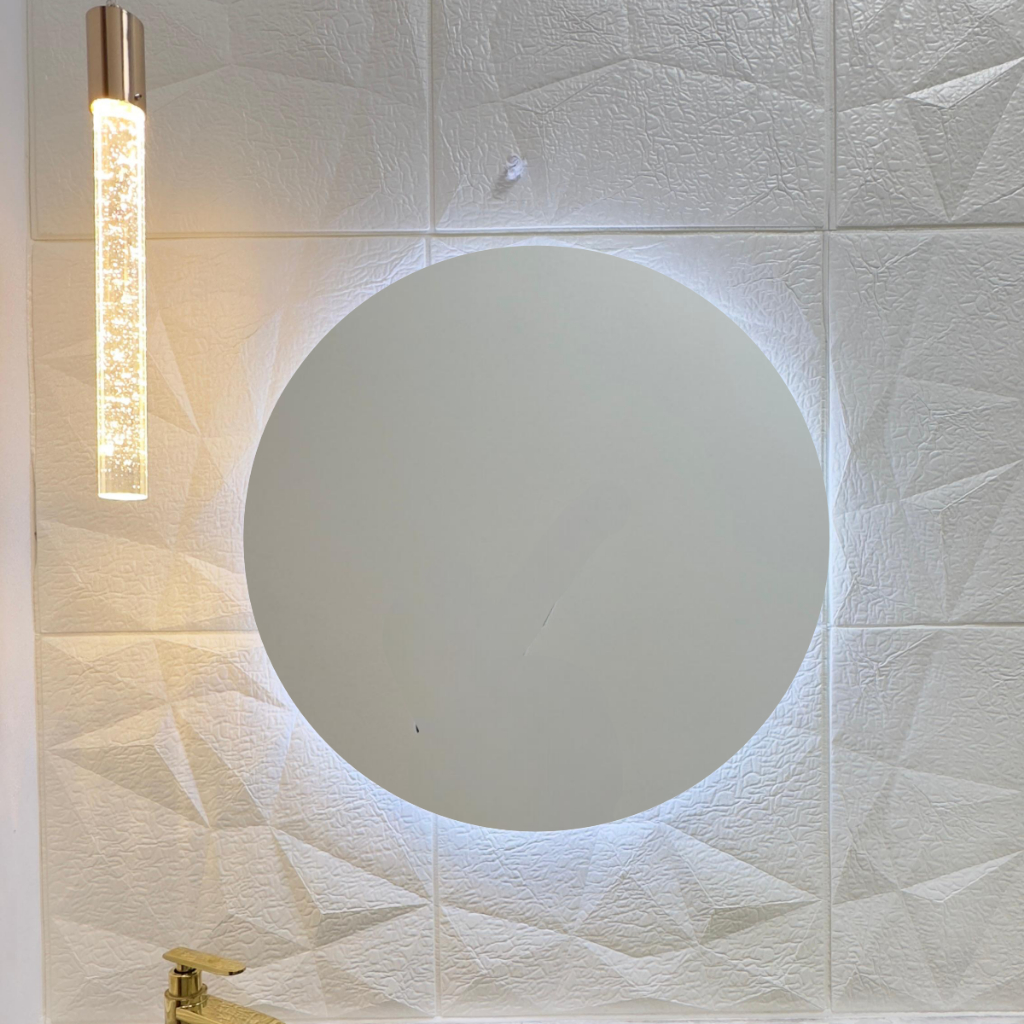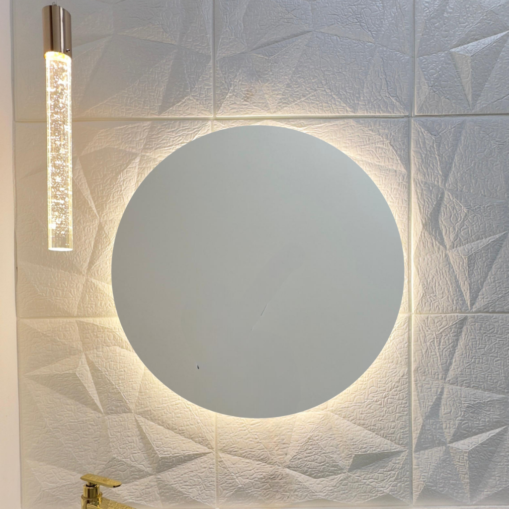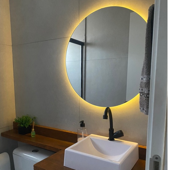 Espelho Redondo 50CmX 50Cm Lapidado com LED À PILHA ou FONTE 12V Ambiente Moderno Decoração