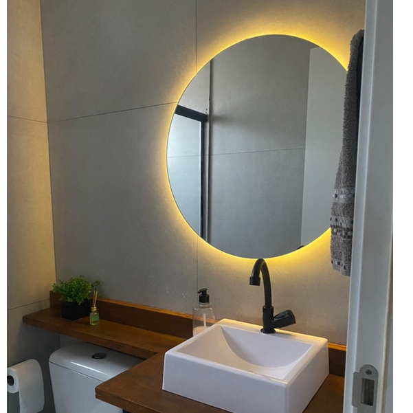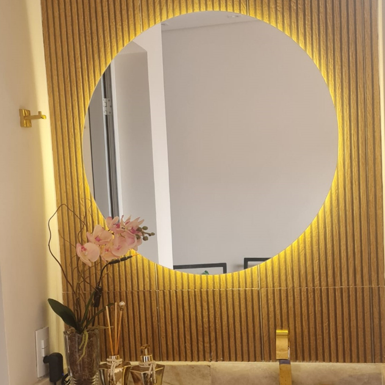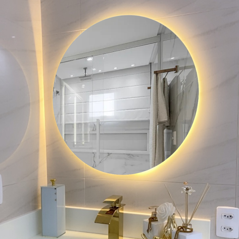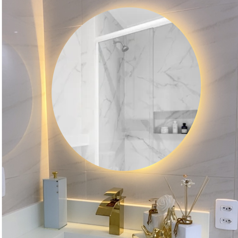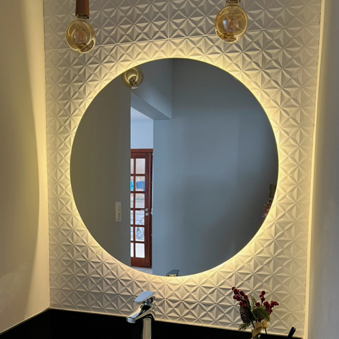 Espelho Redondo 80Cm X 80Cm Lapidado com LED À PILHA ou COM FONTE 12V Ambiente Moderno Decoração