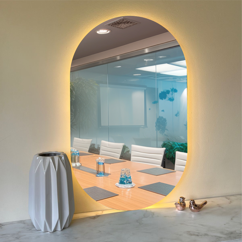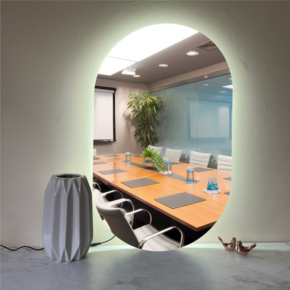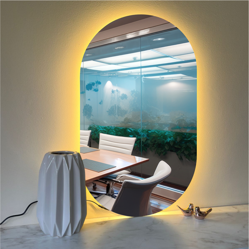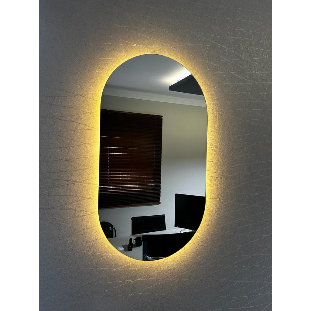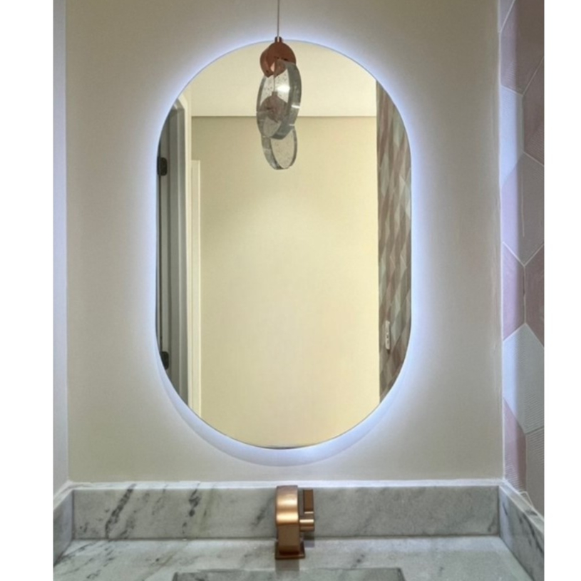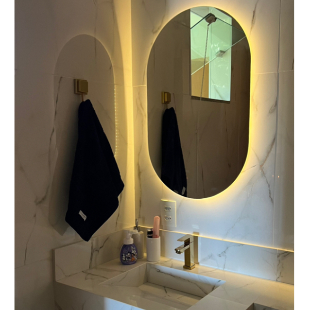 Espelho orgânico OVAL Grande com Led 80x50cm Lapidado à Pilha ou Fonte