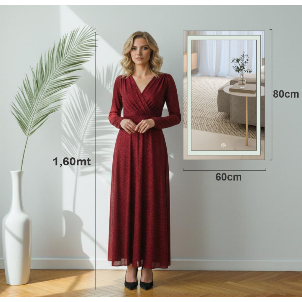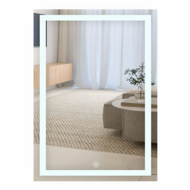 Espelho Jateado 80x60 cm com 3 TONS DE LED e touch screen, FONTE SLIN, decoração