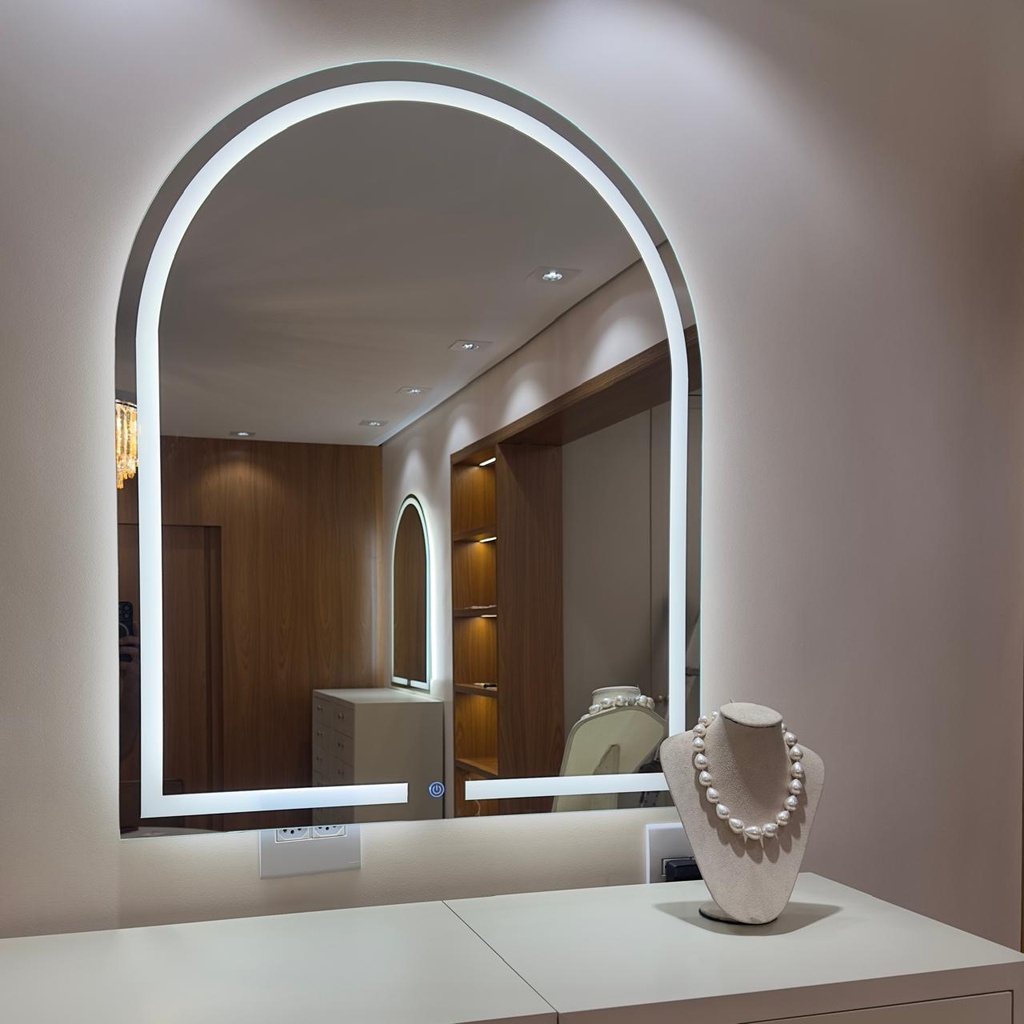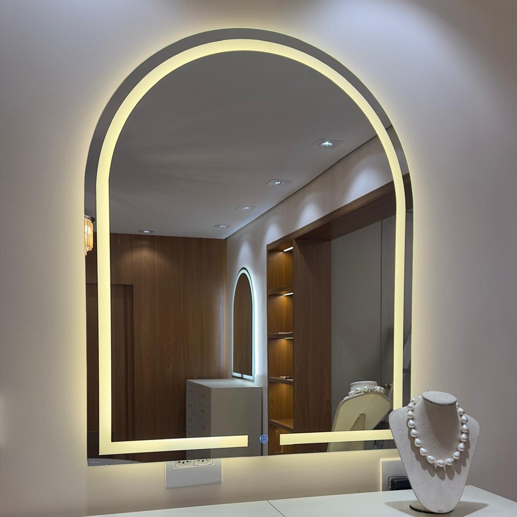 Espelho Oval Jateado 3 cores de Led e Botão Touch 70x50cm