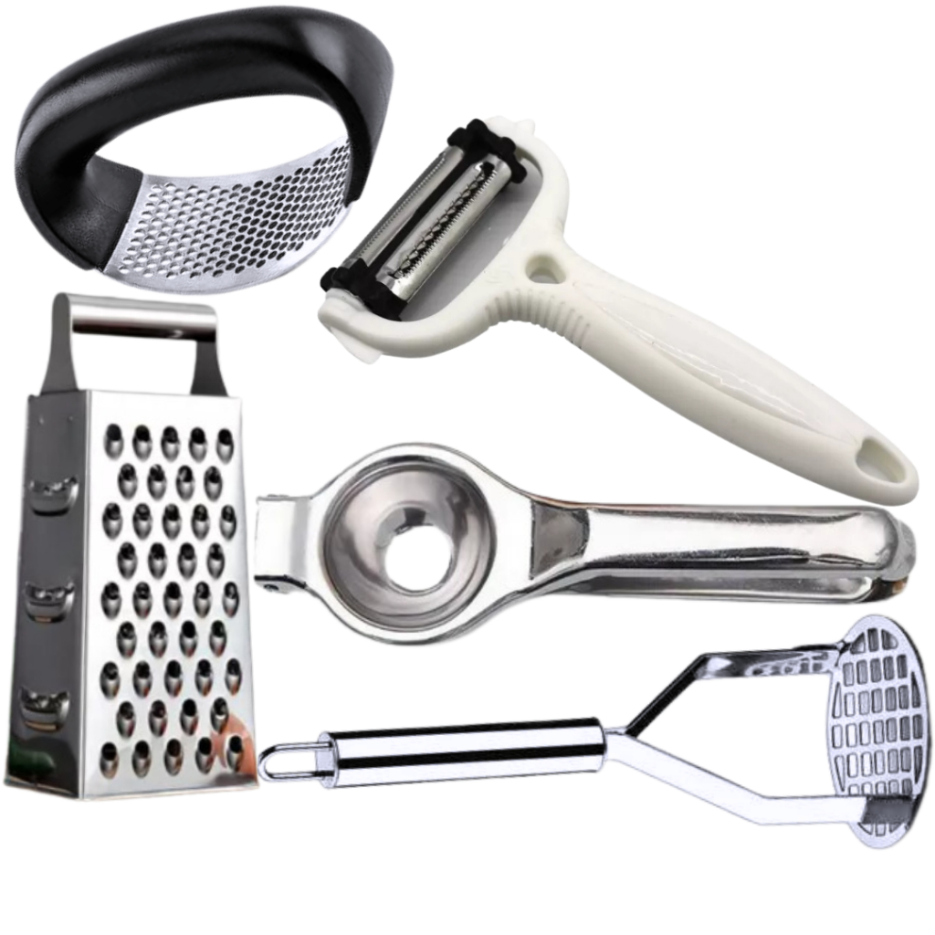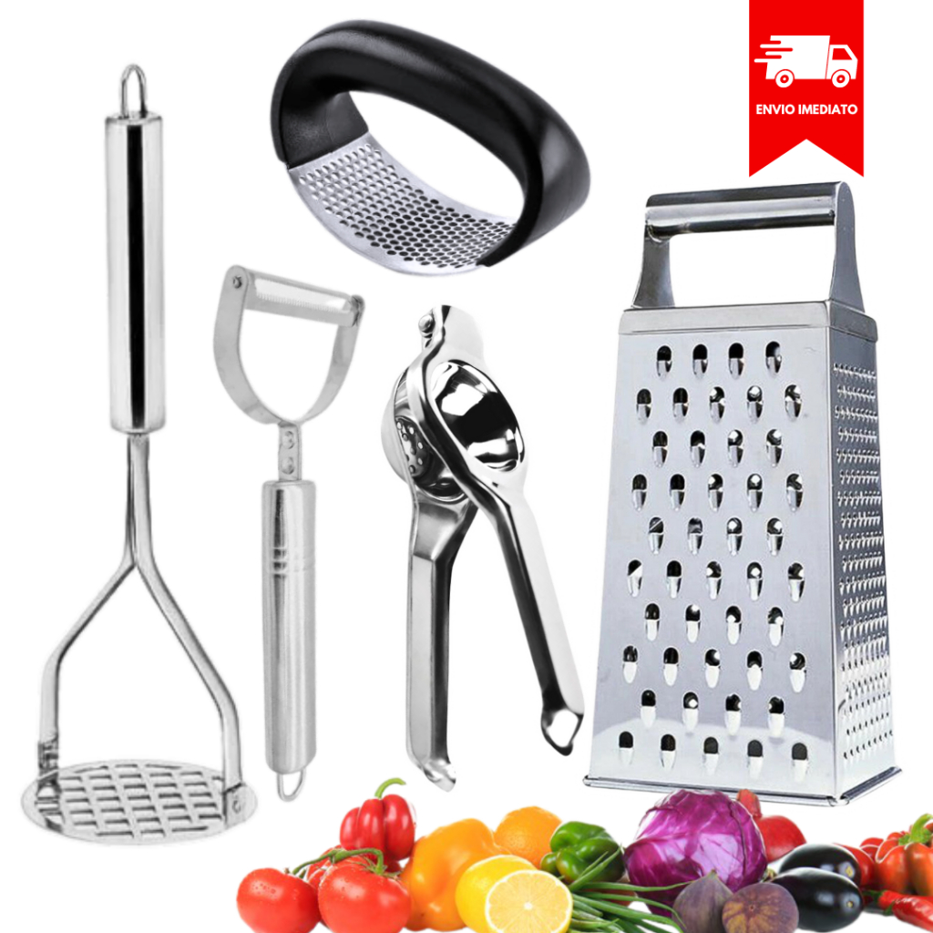 Kit Ralador Amassador de Alho Descascador de INOX Espremedor de Limão Amassador de Batata