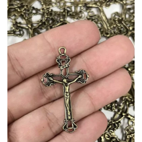 50 Crucifixo para Terço 4.0cm Ouro Velho Atacado - Linda Cruz para Artesanato Religioso