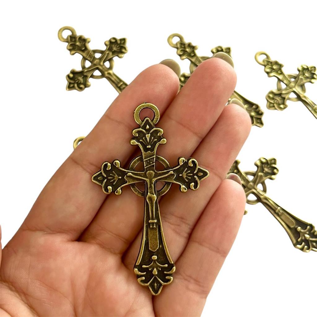Crucifixo Grande para Terços e Rosários - Ouro velho - 1, 5 ou 10 unidades