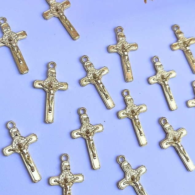 30 Cruz pequena São Bento Reta Dourado - Pingente para Artesanato religioso