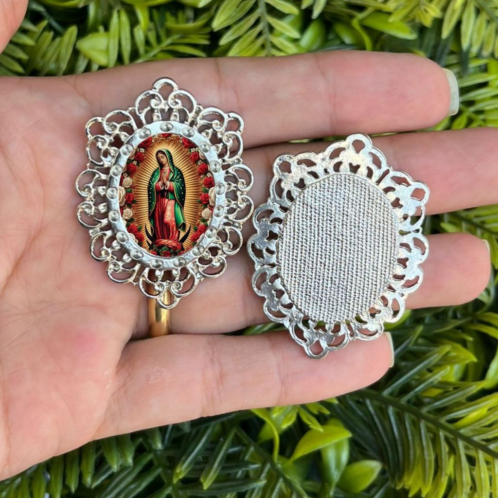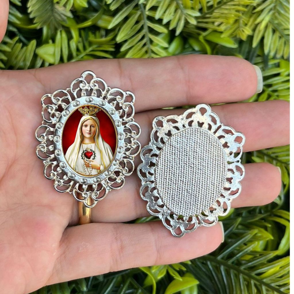 Relicário Grande para Terço Resinado Níquel - Diversos Santos disponíveis