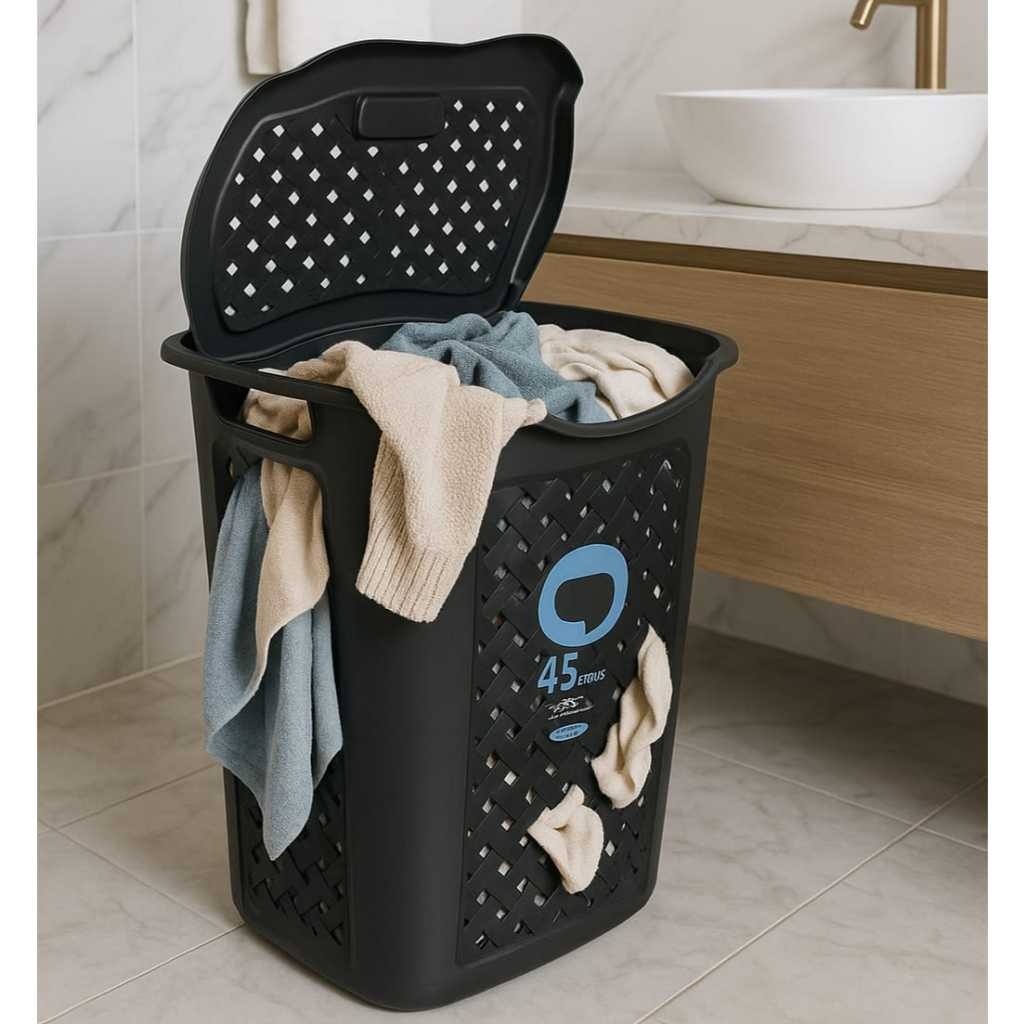 Cesto de Roupa Suja Grande 45L Rattan Lavanderia Marmorizado Organizador Banheiro Balde de Roupas