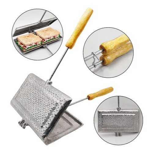Misteira de Alumínio Forma Dupla Tostex Duplo Baurutex Sanduicheira de Fogão Bauru Tostequeira Misto Quente Cabo de Made