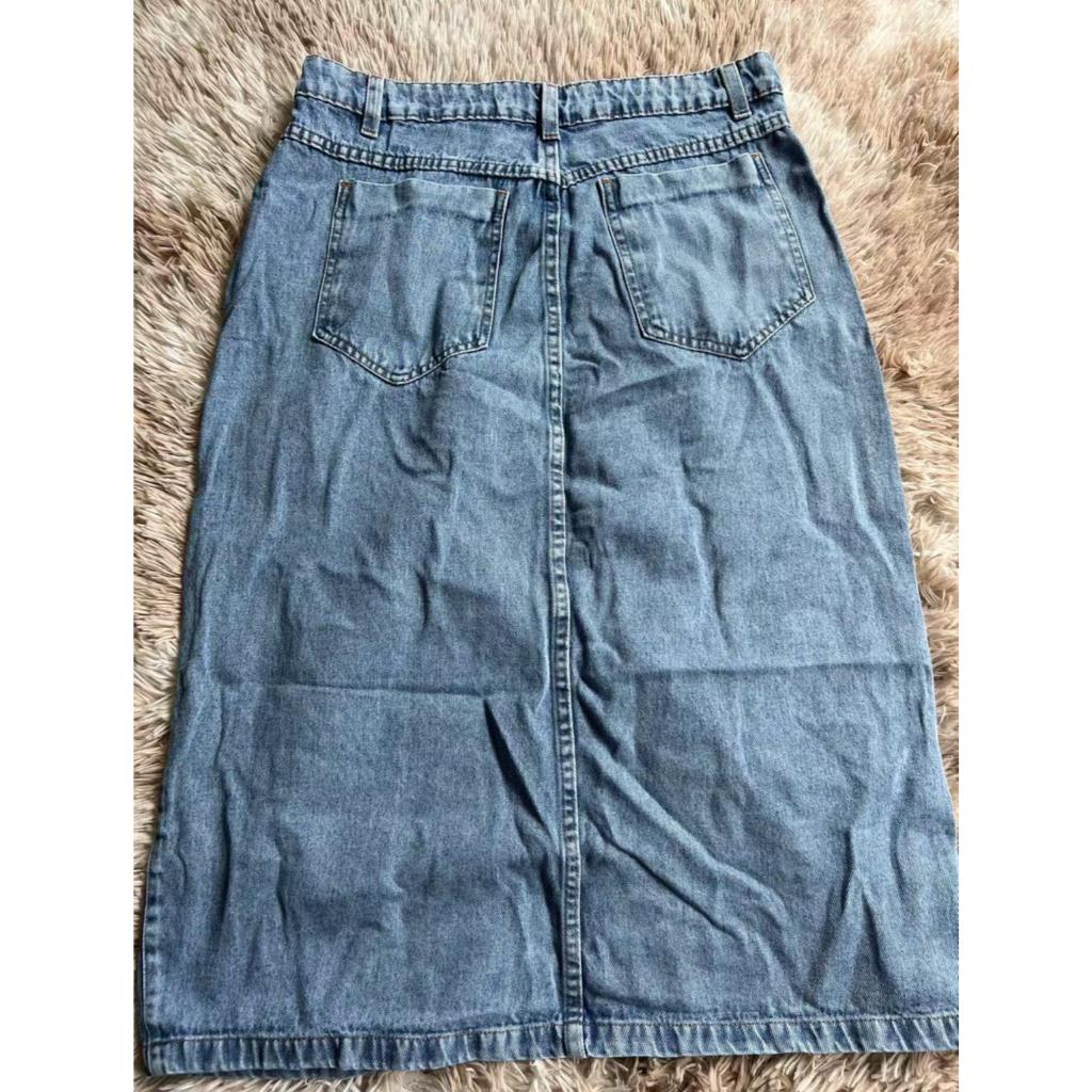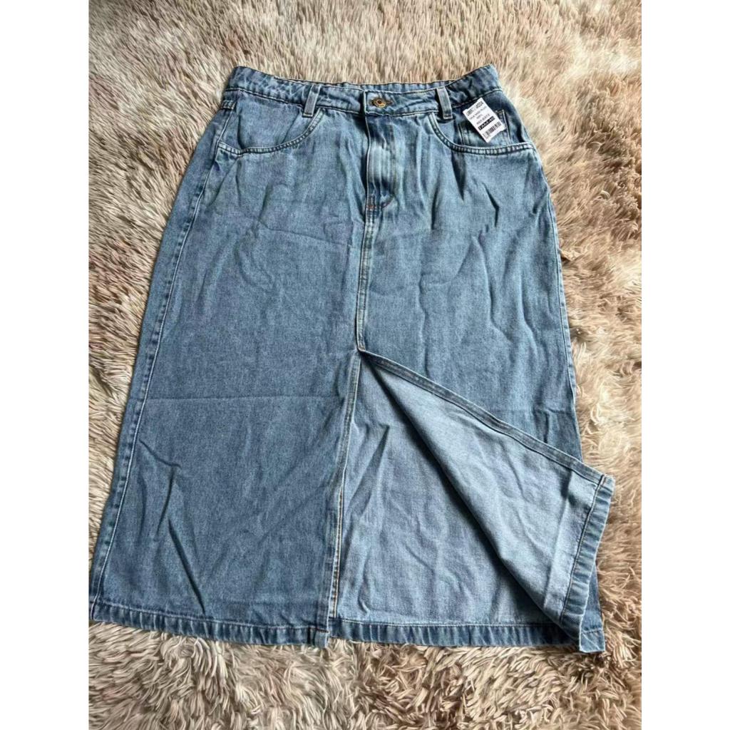 Saia Jeans Midi Plus Size Com Fenda Sem Lycra | Premium |