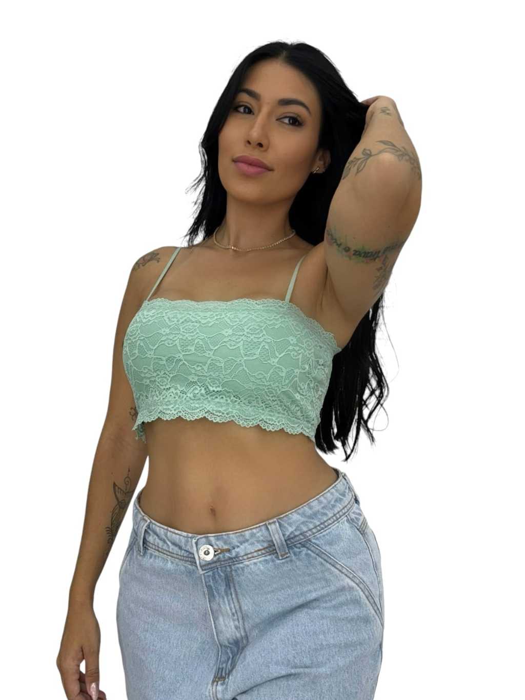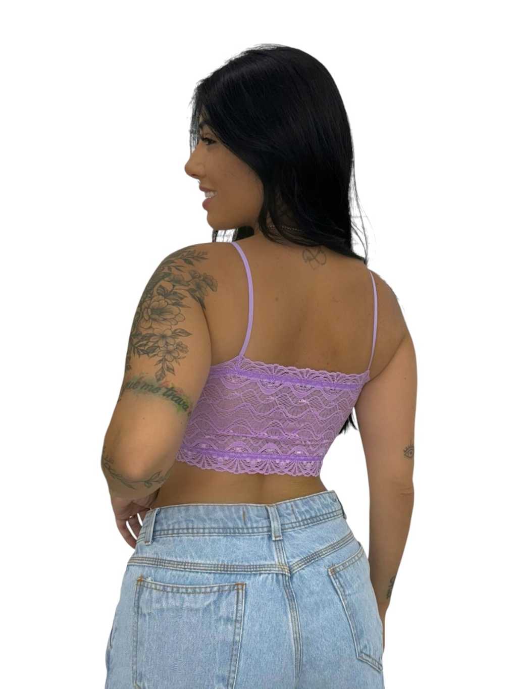 Kit 6 Top Faixa Rendado com Bojo Topper com Forro Regata Nadador Cropped Feminino Blusa Renda Pilates Sutiã Caminhada