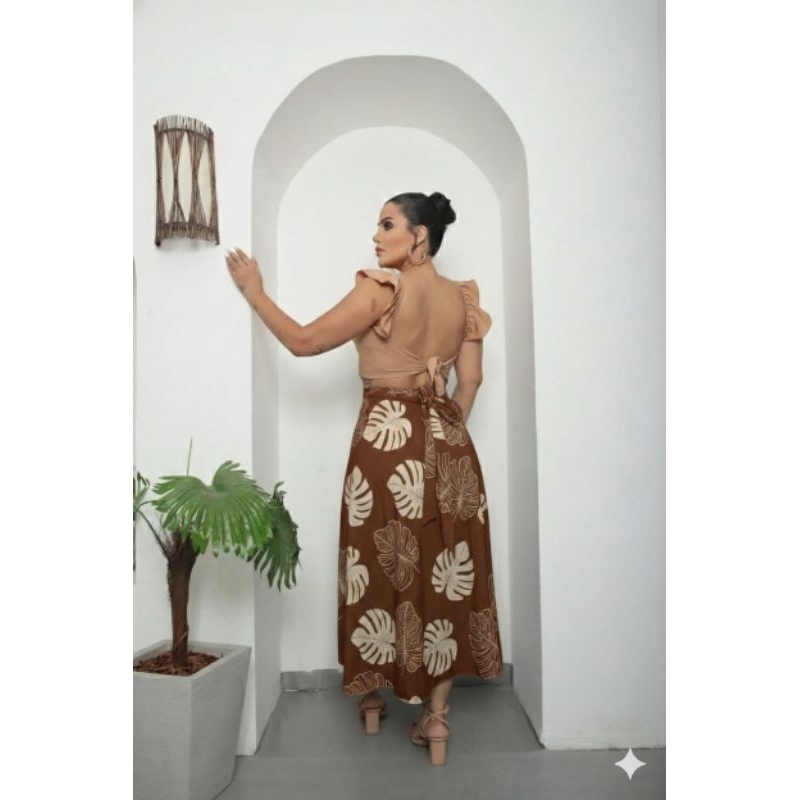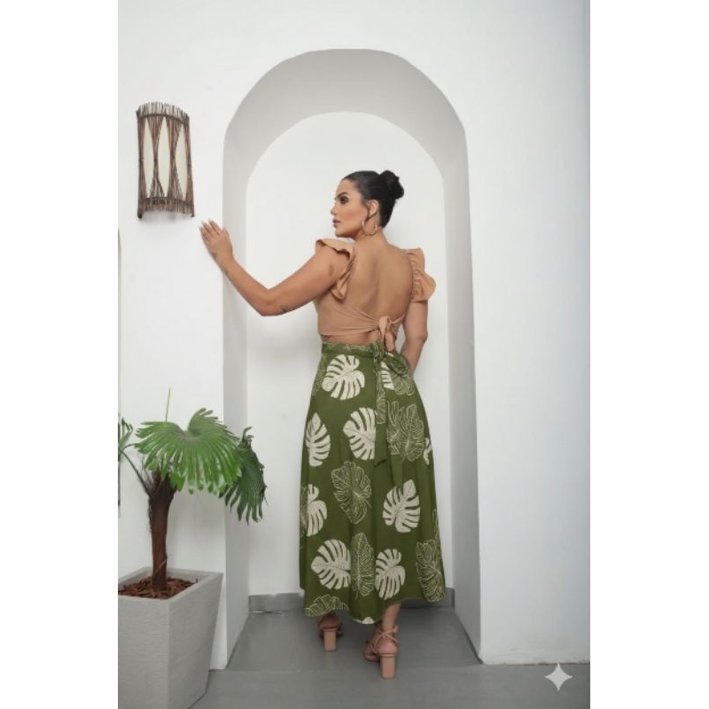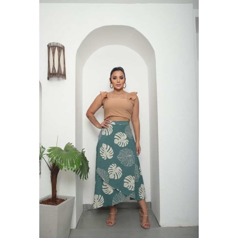 Saia Feminina Envelope Pareo Crepinho Estampado Ideal Ajustável ao Corpo Maravilhosa
