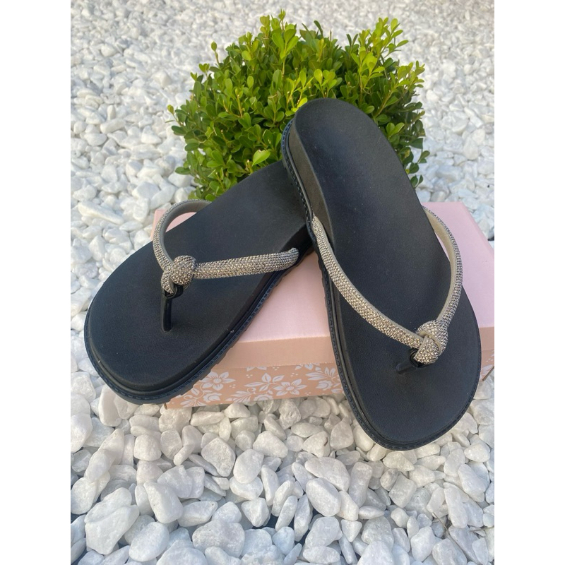 Sandália Feminina Papete Strass Brilho Alta Elegante Conforto Lançamento