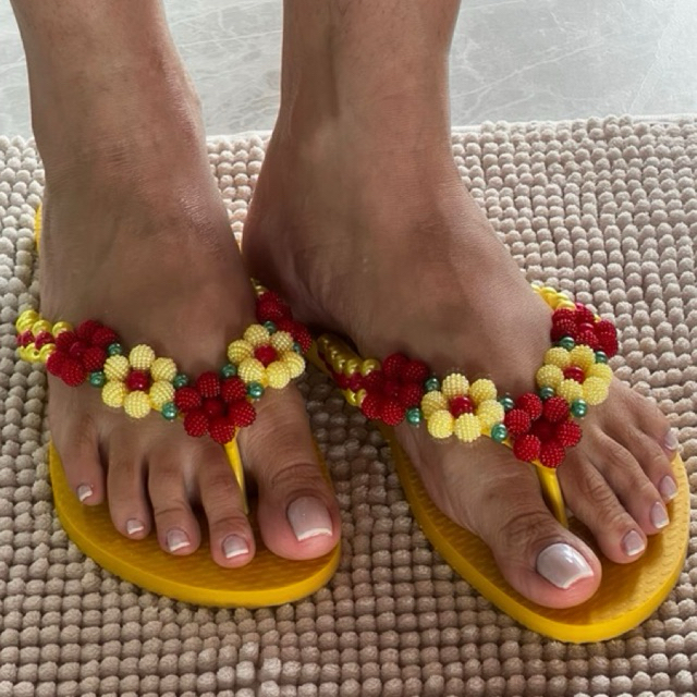 Chinelo Bordado Sandália Feminina Decorada Pedraria Pérolas Envio Rápido