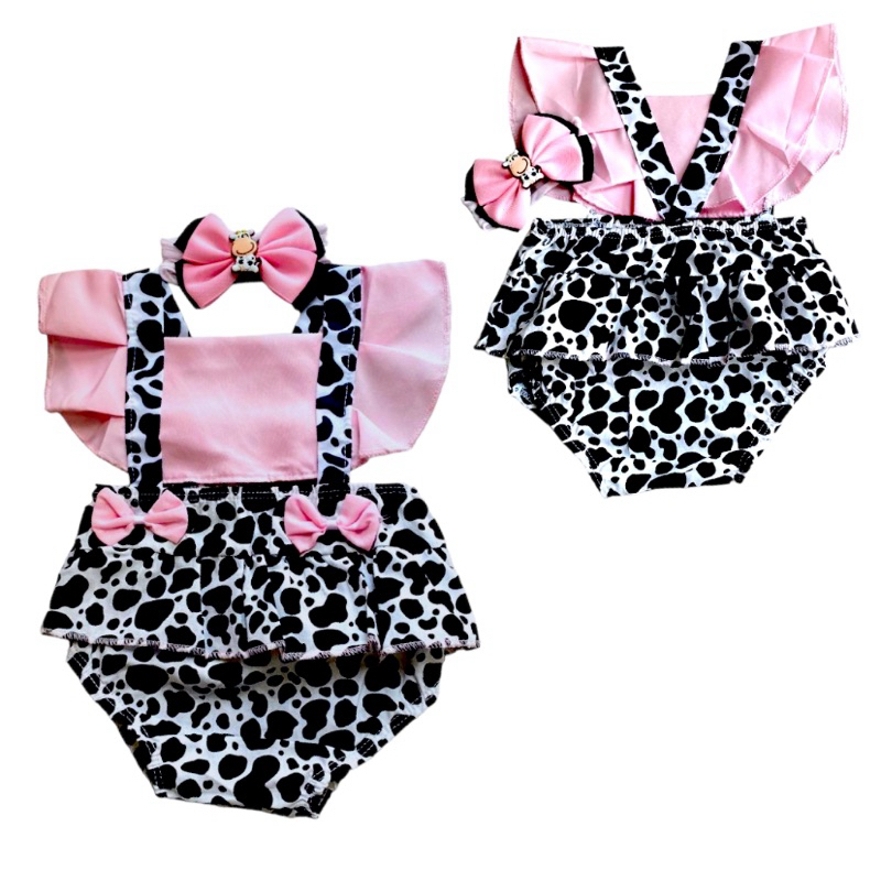 Romper Jardineira Bebê Menina Mesversario Luxo + Laço