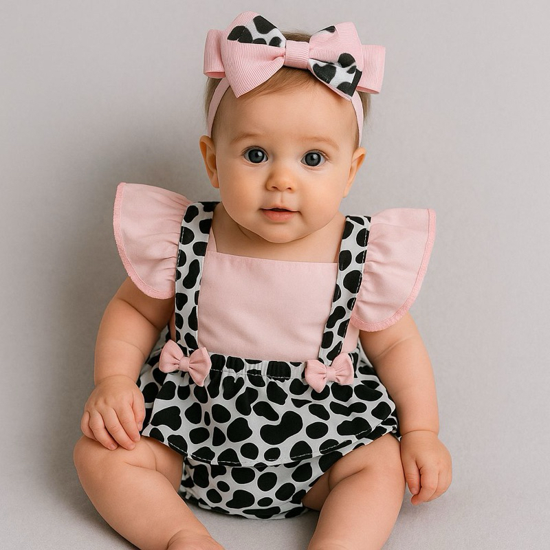 Rompe Jardineira Body Temático Fazendinha Vaquinha + Laço melhores temas meninas