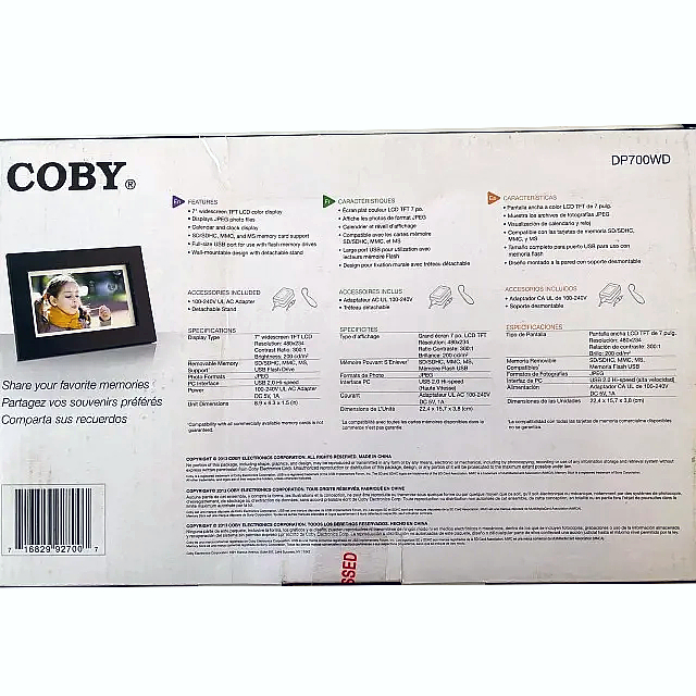 PORTA RETRATO DIGITAL TELA LCD - RELÓGIO, CALENDÁRIO - COBY 7 POLEGADAS