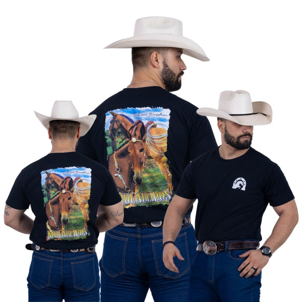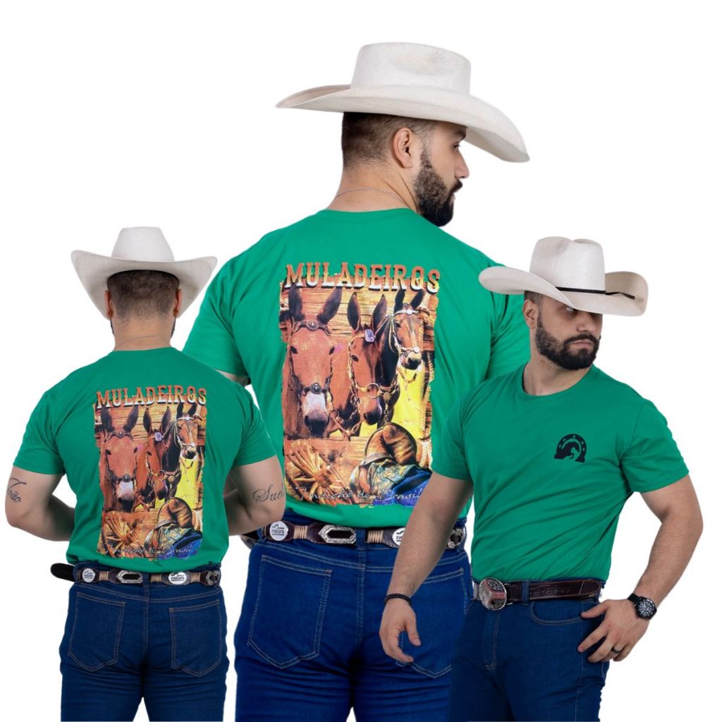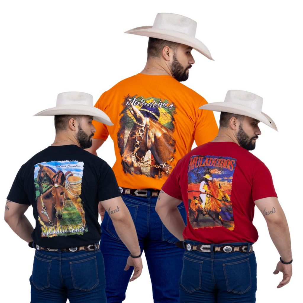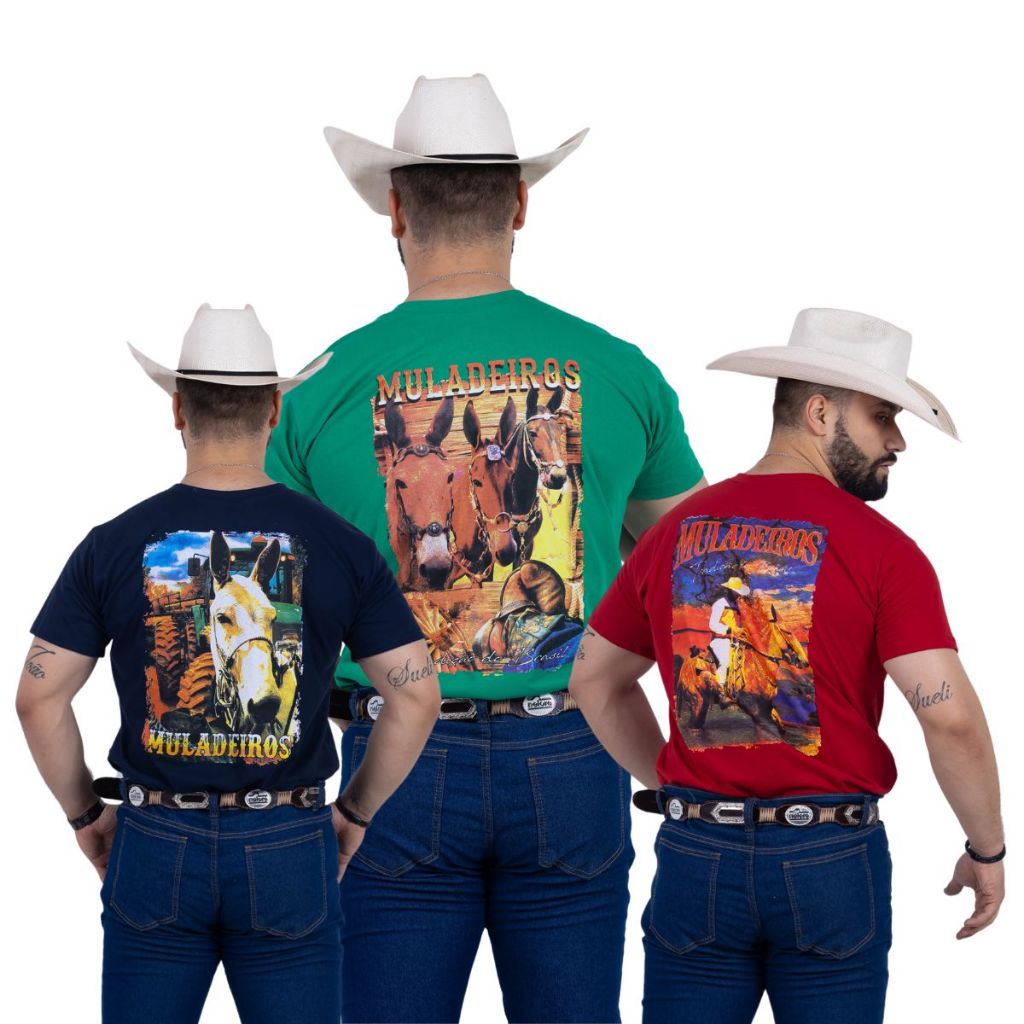 Kit Com 3 Camisetas Muladeiro e Rodeio 100% Algodao Fio 30.