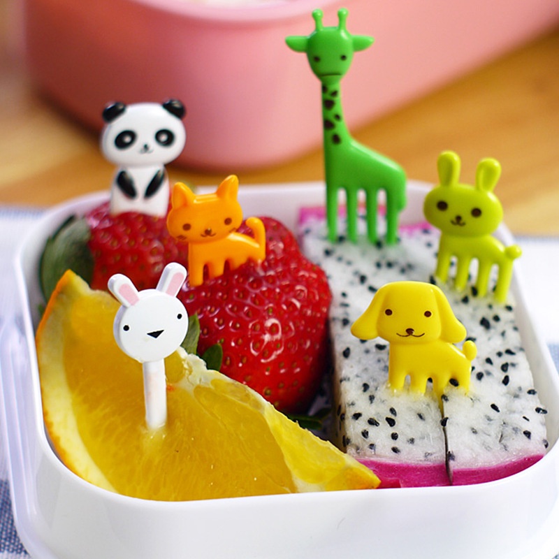 10Pcs Bento Vegetal Crockry Bonito Mini Criança Crianças Frutas Garfos Palitos Alimentos Desenhos Animados Animais De