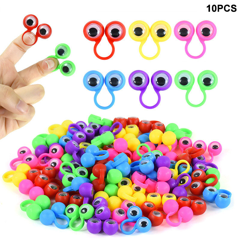 10/20pcs Fantoches De Dedo Coloridos Anel De Plástico Wiggly Eyeball Kids Birthday Party Favorece Sacos