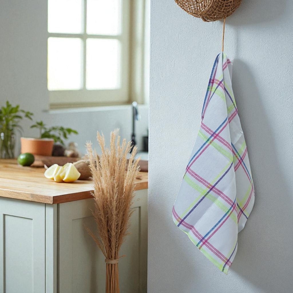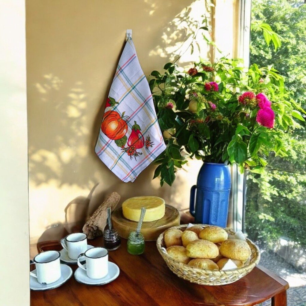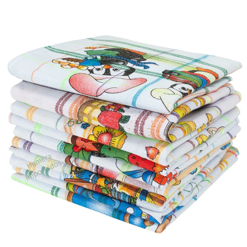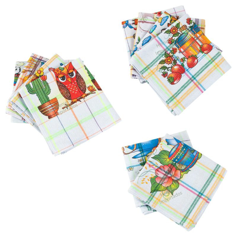 Pano de Prato Colorido Xadrez Estampado - Kit com 12 unidades