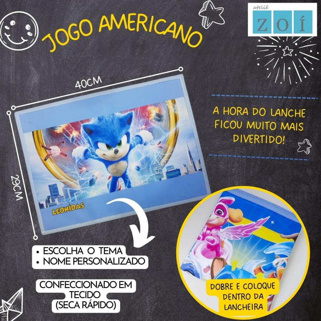 Jogo Lugar Americano IMPERMEÁVEL ESCOLAR 30x40cm Patrulha com nome personalizado
