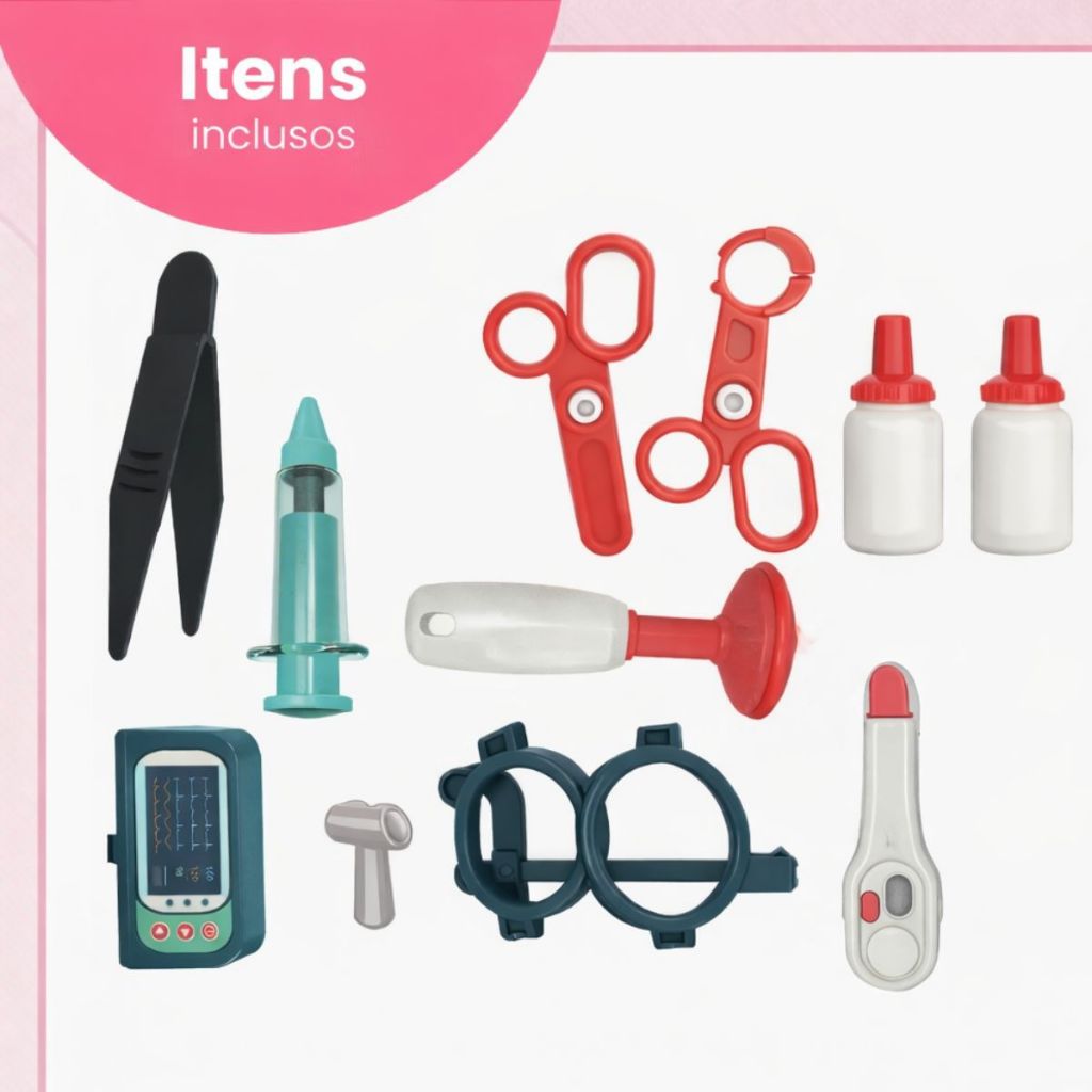 Kit Médico Infantil Little Doctor Set Brinquedo Educativo Maleta com Acessórios Consultório Crianças