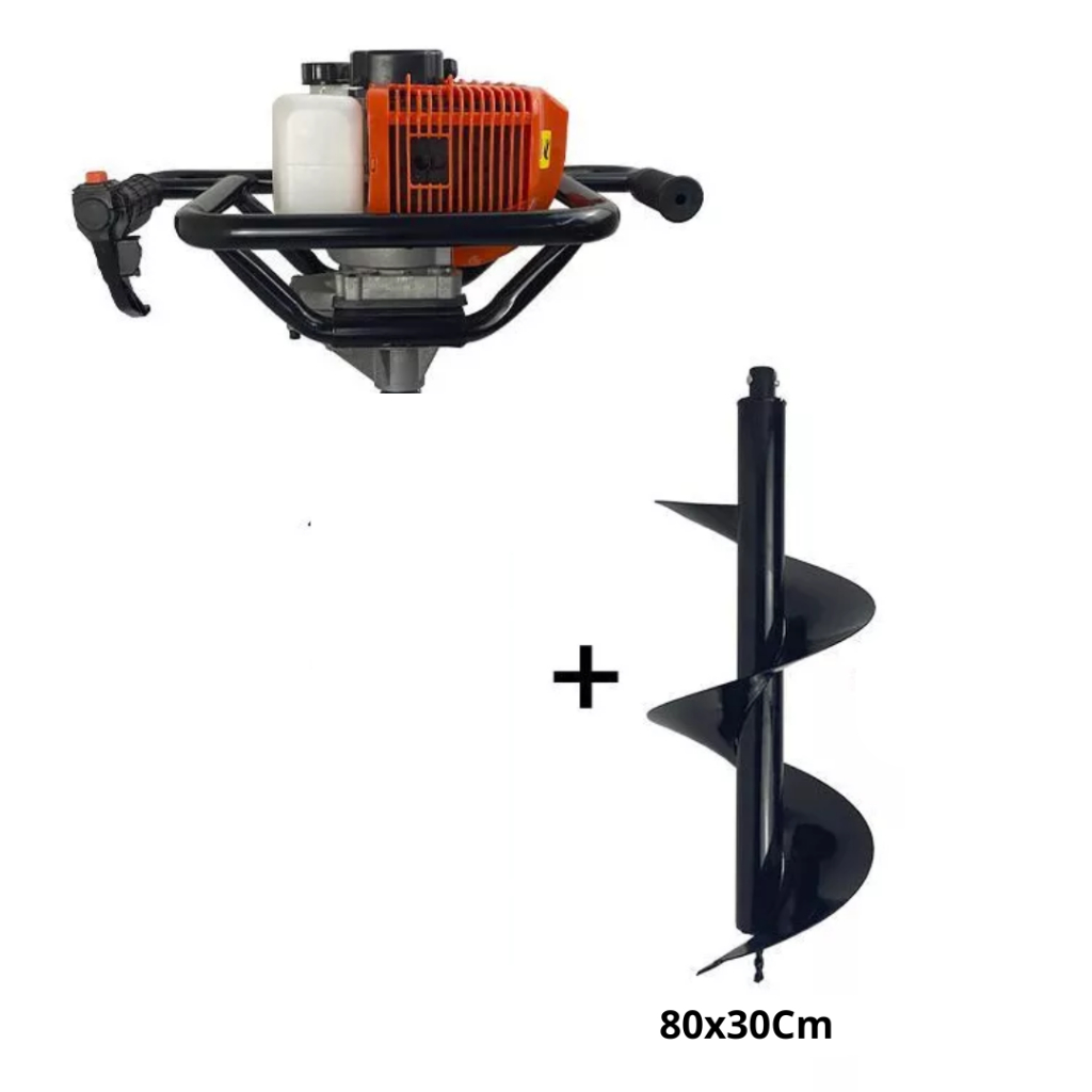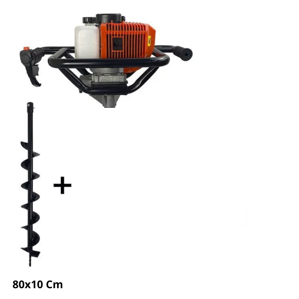Perfurador De Solo Gasolina 75cc C/ Extensão 1 Metro 60CM Brocas 80x10 80x20 80x30 Extensão 1 Metro