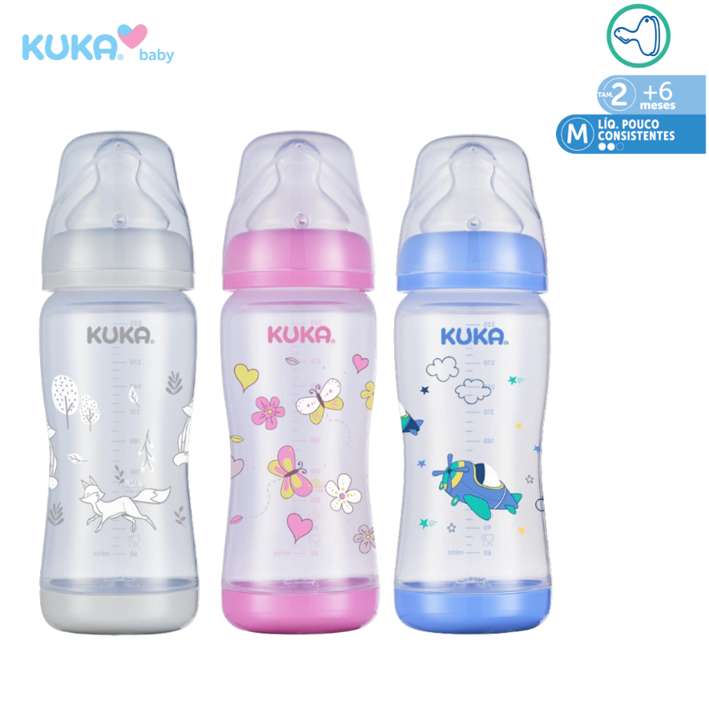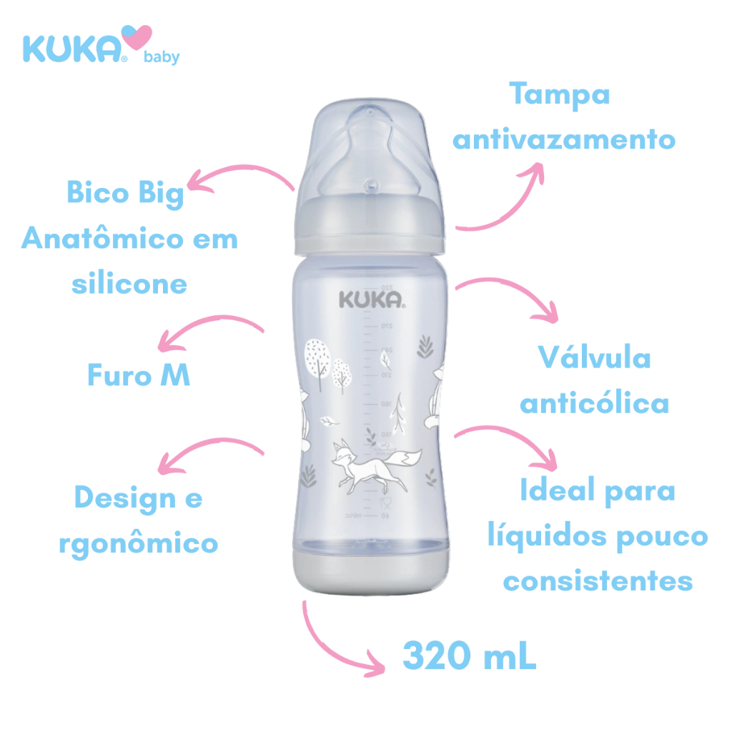 Mamadeira Kuka Anticolica Elegance Plus +6 Meses Bico Big Ortodôntico 320mL com Tampa Protetora