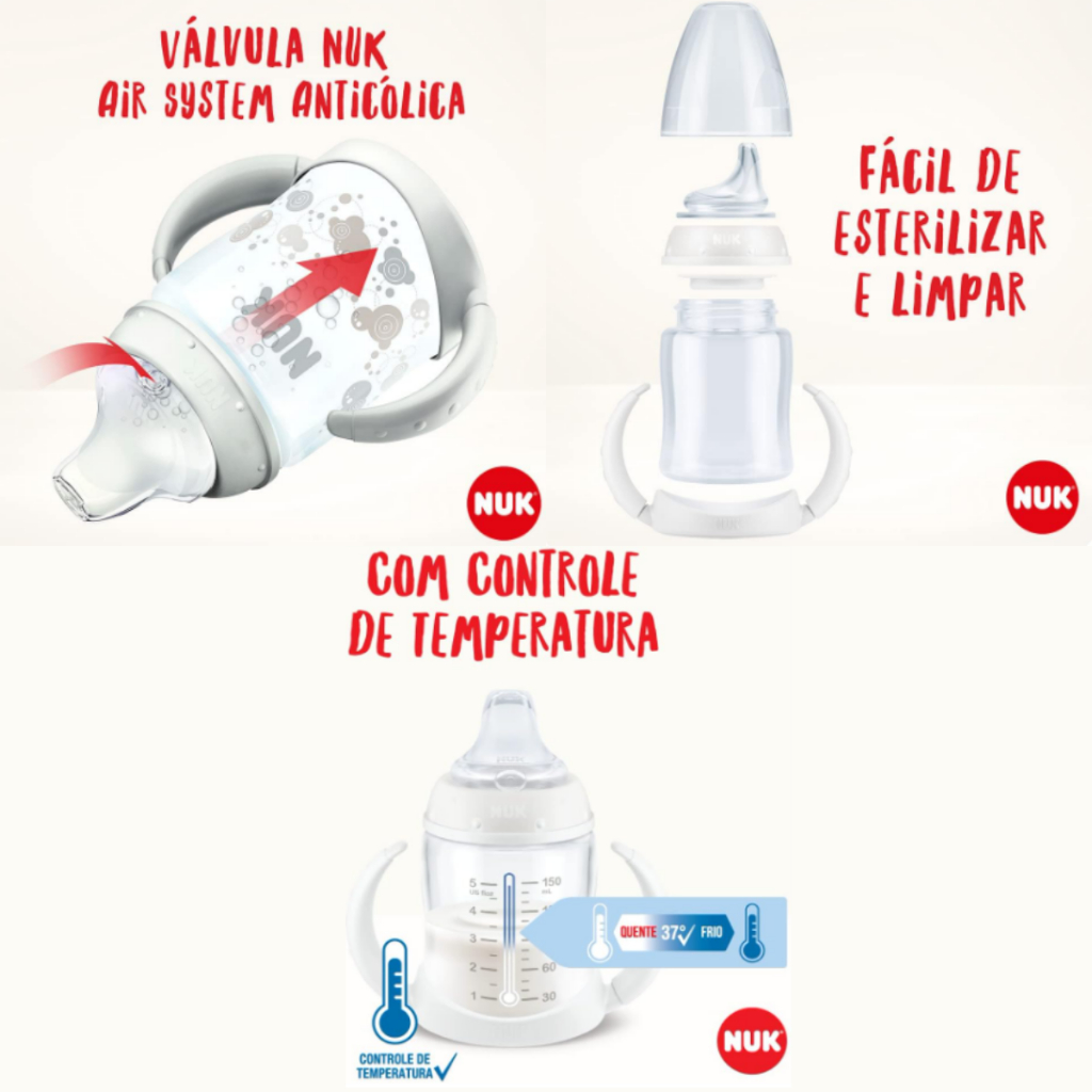 Kit 2 Copo Transição Mamadeira para Copo Nuk Fase 2 150mL/300mL com Controle de Temperatura