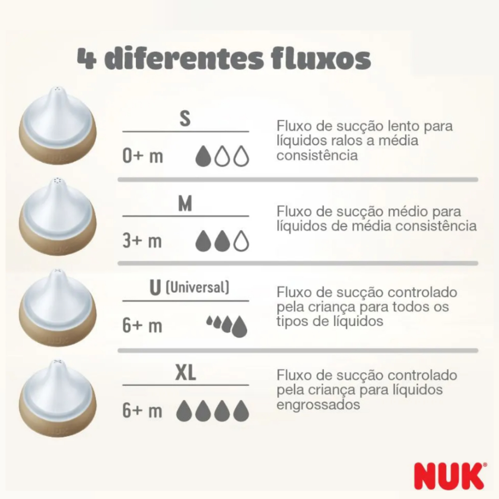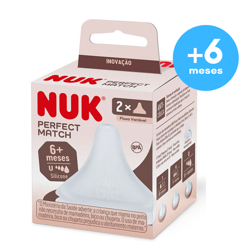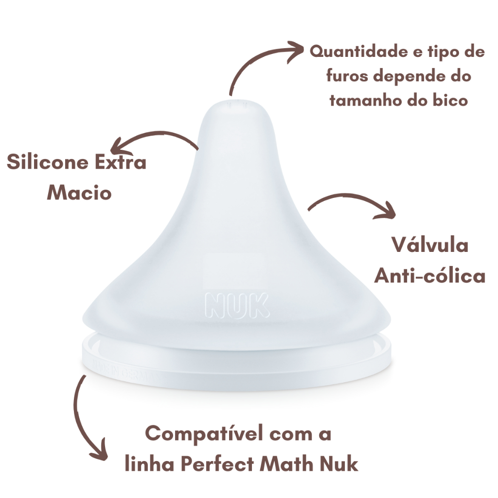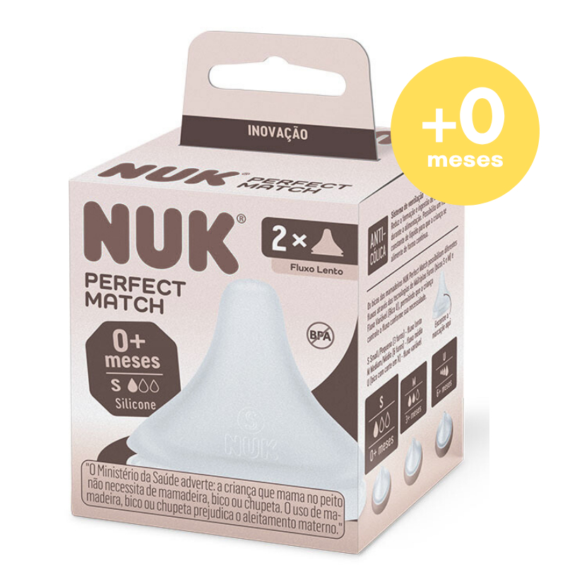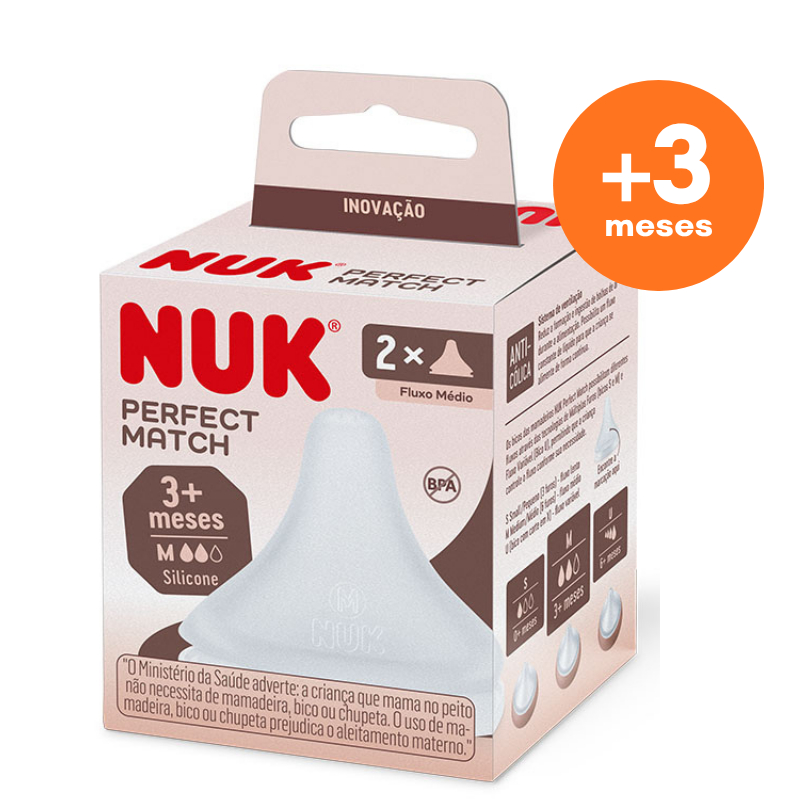 Kit Bicos Mamadeira Nuk Perfect Match Bico Reto Válvula Anticolica Silicone Macio Fluxo Variável +0m