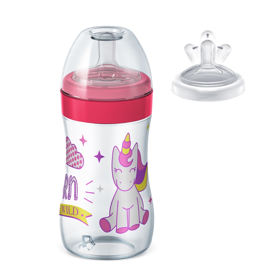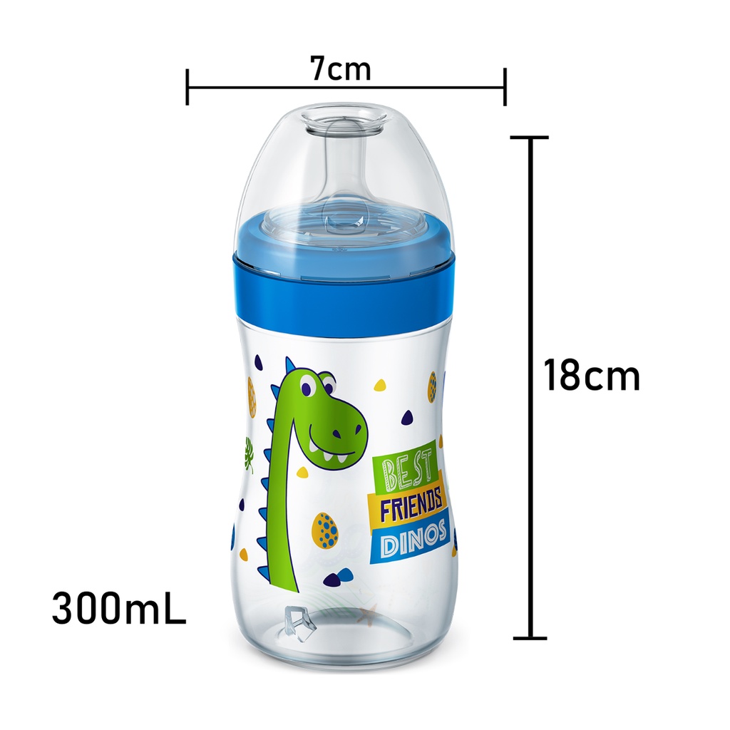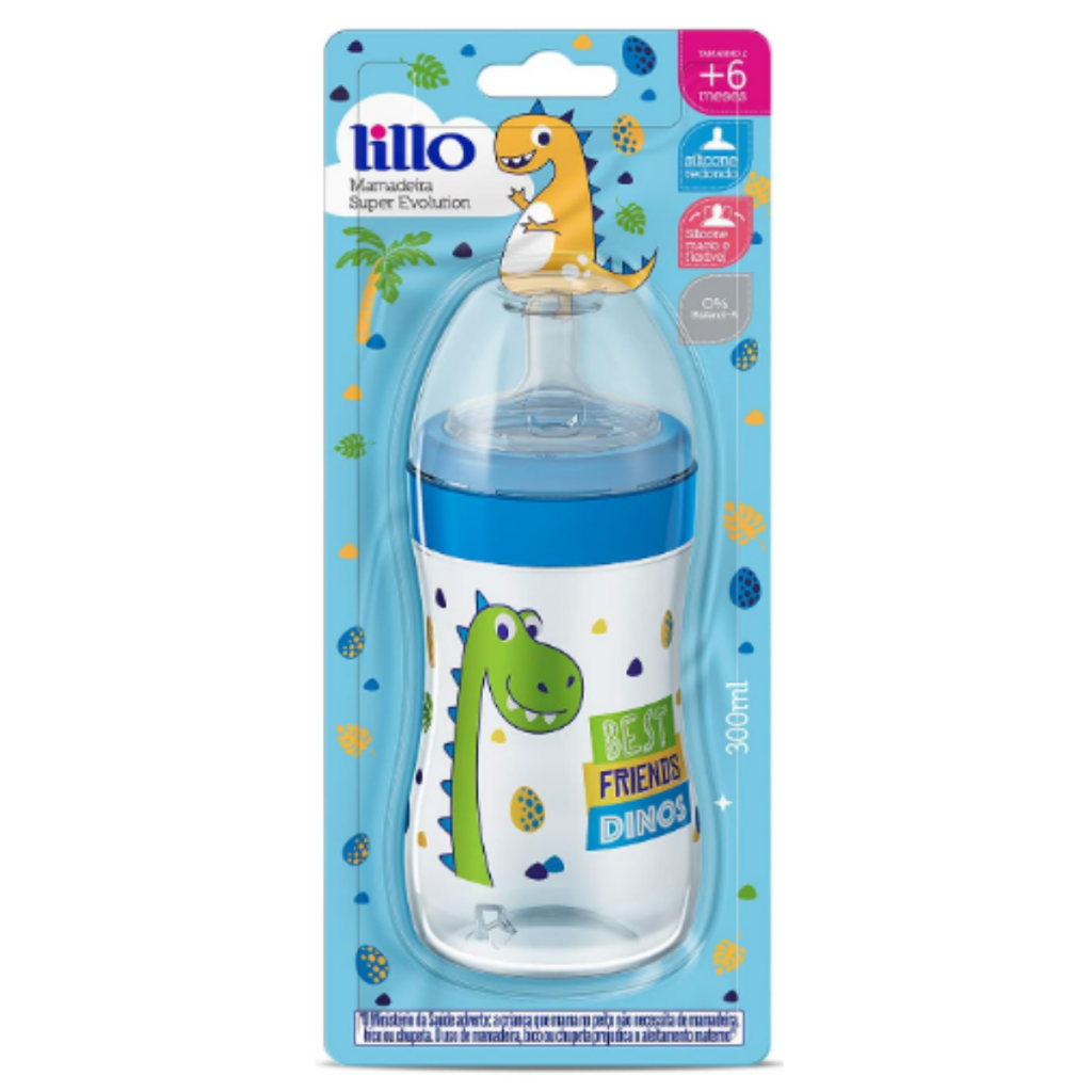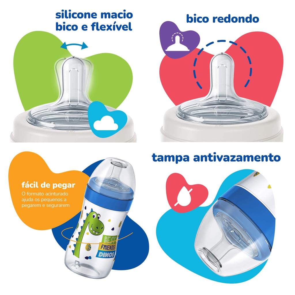 Mamadeira Super Magia Nova Com Tampa Antivazamento Dinossauro Unicórnio Bico Silicone 300ml
