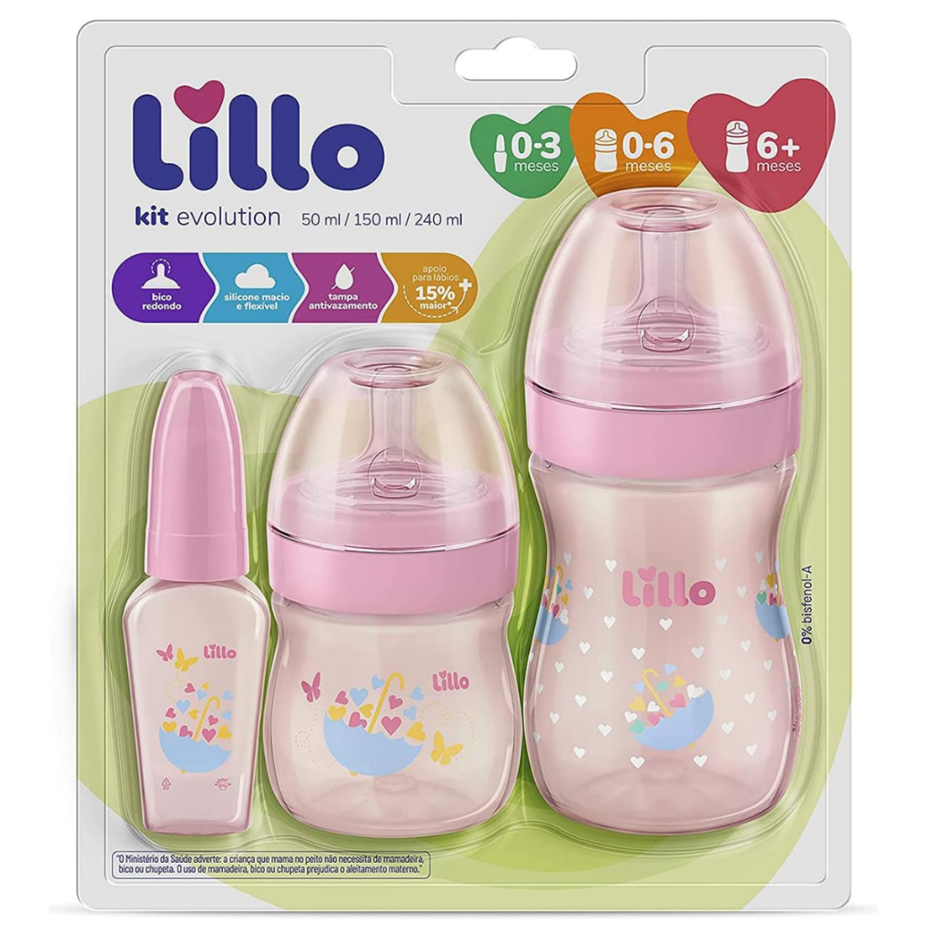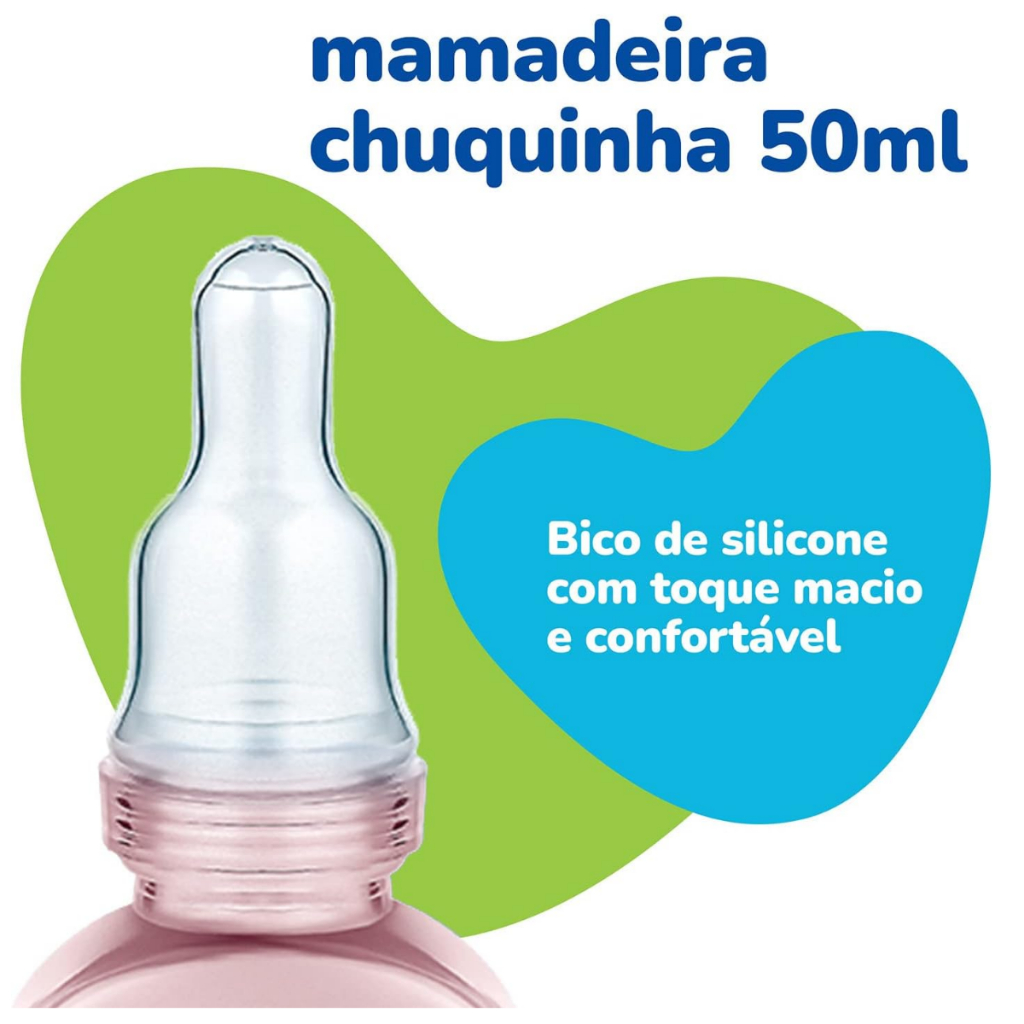 Kit de Mamadeiras com Chuquinha Menina Antivazamento Bico Redondo Primeiros Passos 50/150/240ml Rosa