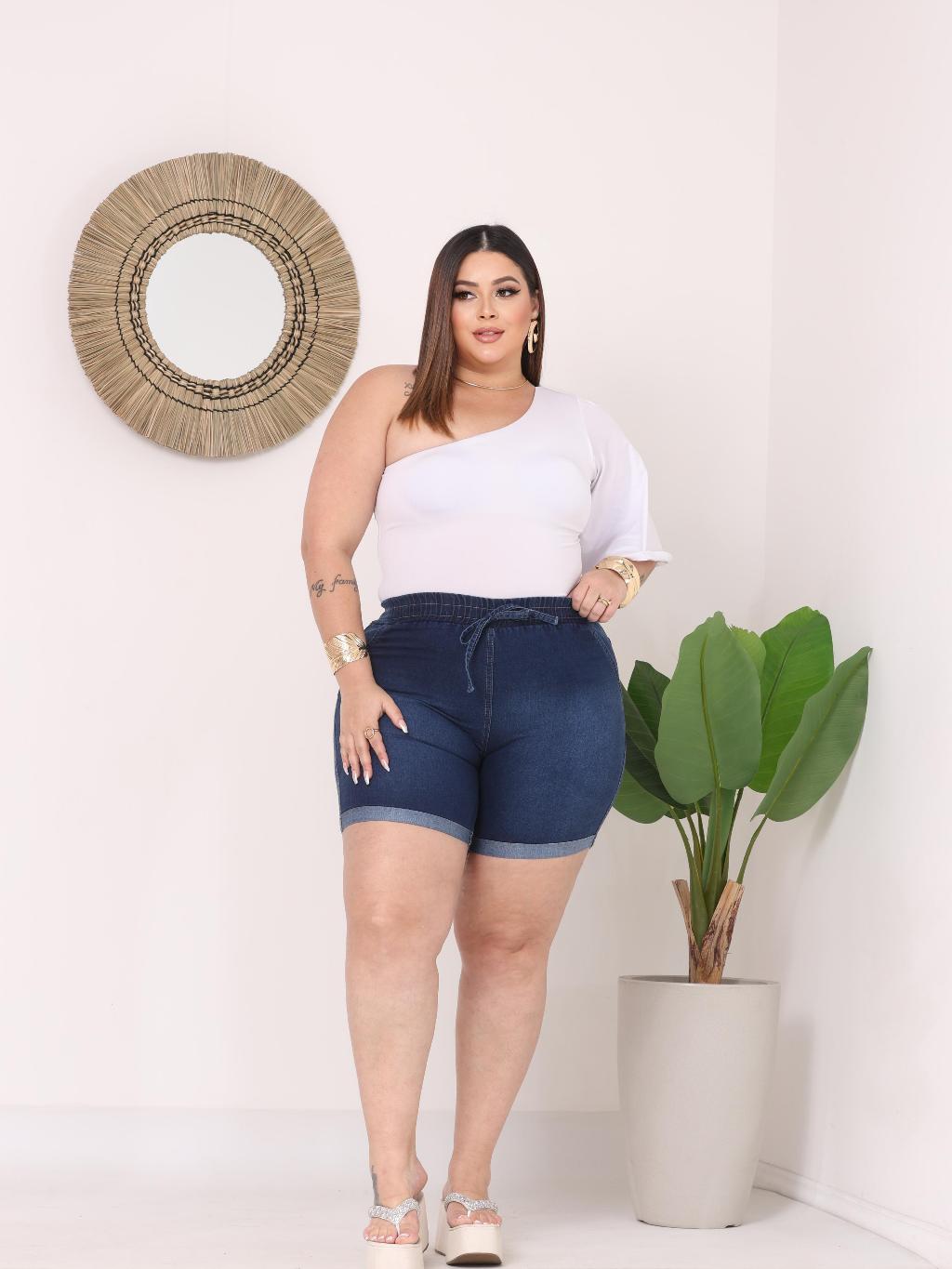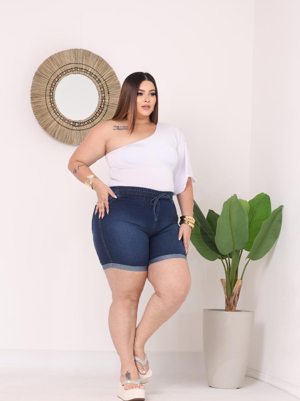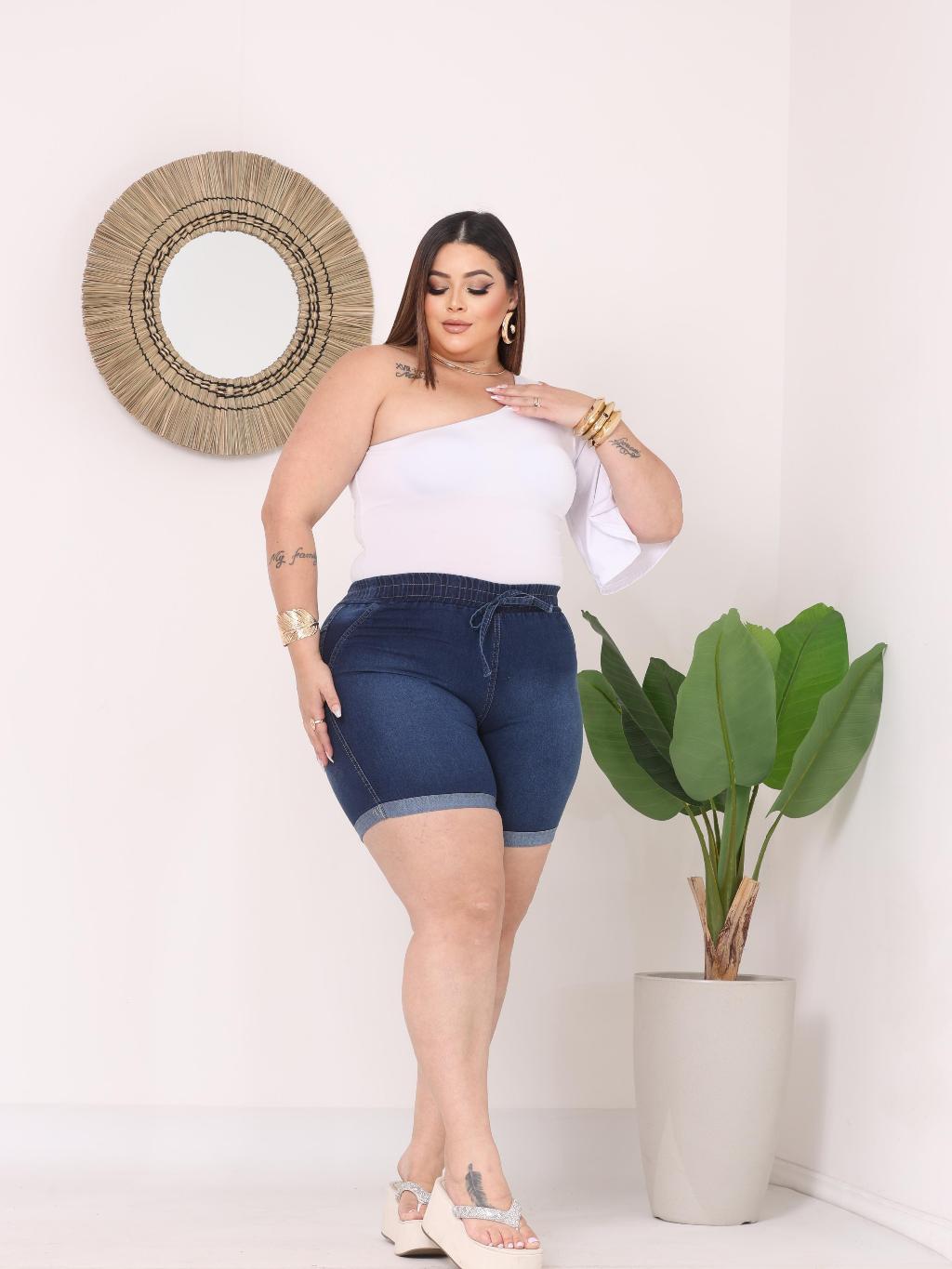 Bermuda Short Jeans Feminino Com Elastico e Elastano Com Bolsos E Reguladores